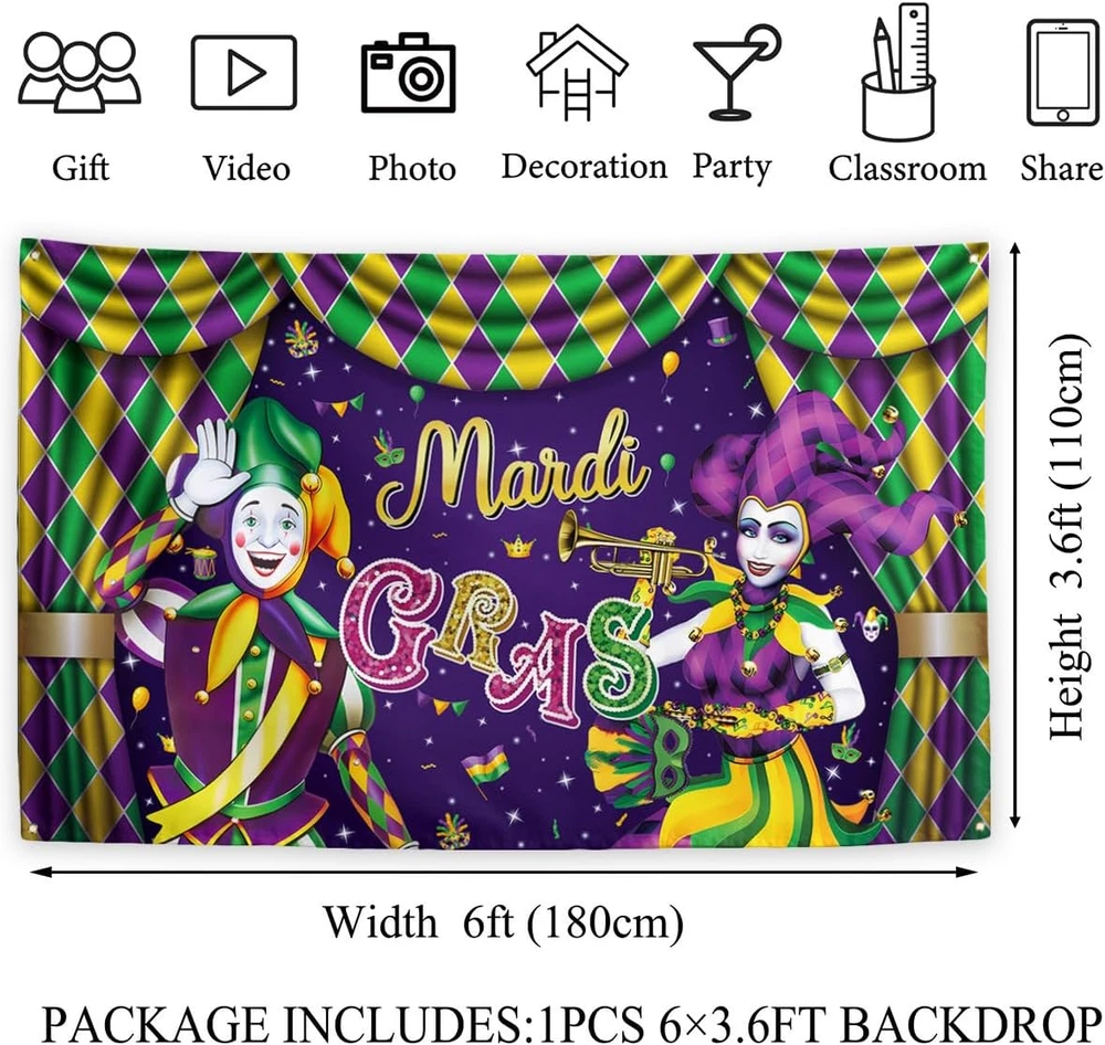 Store New Arrivals Add to Favorite View Feedback Contact Fast deliveries to the customer's home Quality customer service John Make the customers happy! Mardi Gras Decorations New Orleans Brazi Carnival Backdrop Fat Tuesday Banner Masquerade Decor Mardi Gras Decorations for Home Party Description [Material]:This backdrop is made of high-quality material,100% polyester fabric, which is not easy to wrinkle or fade,and can be reused. [Size]:Our backdrop size is approximately 71 × 43 inches(180cm×110cm), large enough to attract people's attention. [Package listing]:Only 1pcs backdrop is included,Backdrop Stand or Clips are Not included. [Easy to hang]:Our background fabric can be hung anywhere you want. There are 4 metal grommets in each corner for easy hanging. Our background fabric is light enough to be hung with tacks, tape, or jute rope, making it perfect for indoor or outdoor use. (Note: Tools such as tacks, tape, or ropes are not included.) [Occasion]:Used for photography, photography, studio, home decoration, wallpaper, wall background scenes or decorations. Also suitable for various holiday parties and gatherings, adding a festive atmosphere. Used for photography, photography, studio, home decoration, wallpaper, wall background scenes or decorations. Also suitable for various holiday parties and gatherings, adding a festive atmosphere. Item model number banner Color B-113 Product Dimensions 71"L x 43"W Item Weight 4.8 ounces Occasion Martin Luther King Jr. Day, Mardi Gras ABOUT US We offer the best prices around on high quality products. Our E-store includes media such as books, movies, music and games while offering electronics, toys, sporting apparel, clothing, tools, general home, garden items and more. SHIPPING We are always working hard to ensure your package arrives as soon as possible. Please understand that some factors like weather, high postal traffic, and the performance of shipping companies are outside of our control. We offer free shipping to the lower 48 states and ship within 2 business days of payment, usually sooner. We do not accept P.O. Boxes. Please provide a physical address. For shipping outside of the continental USA, we only use eBay's Global Shipping Program. The item is shipped to KY and then sent to the rest of the world. International customers are responsible for all duties and taxes. Continue to 'check out' to calculate costs for shipping the item to your country. Messages regarding eBay's Global Shipping Program MUST be directed at eBay EXCLUSIVELY. RETURNS We offer a 30-Day Return Policy on items in which you are not completely satisfied with. You have the option of a full-refund or an exchange of the item. No returns are available on items shipped outside of the USA PAYMENT We accept PayPal. CONTACT US This page content is yet to come Please ad us to your favorite seller and visit again later Thank You CUSTOMER SATISFACTION We try our very best to make sure every customer is completely satisfied. If there's a problem, message us! We're happy to help. WE ACCEPT