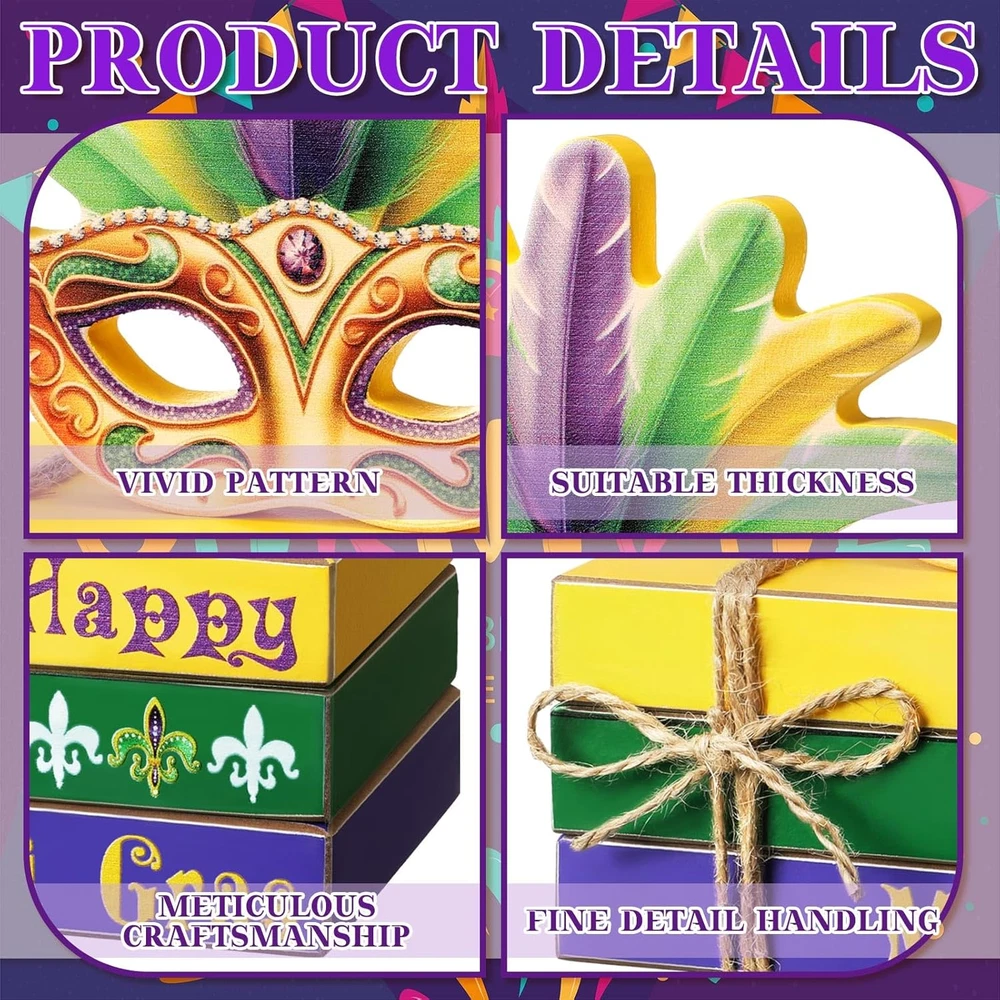 Store New Arrivals Add to Favorite View Feedback Contact Fast deliveries to the customer's home Quality customer service John Make the customers happy! Mardi Gras Tiered Tray Decor Mask Book Stack Decor Green Yellow Purple Farmhouse Decor for Home Crown Centerpieces for Tables Entryway Home Decor Mardi Gras Decoration for Gift Accessories Description Carnival Decoration Set: you will receive a set of Mardi Gras tiered tray decorations, which includes a wooden mask decoration and a set of 3 fake books stacked with twine, full of carnival atmosphere, suitable for most occasions Small ant Cute: Mardi Gras mask table wooden sign measures approximately 5 x 4.3 x 0.5 inches/ 12.6 x 11 x 1.2 cm, stacked decoration book measures approximately 5.5 x 3.5 x 2.4 inches/ 14 x 9 x 6 cm, available from seen from a distance, it is easy to attract the attention of guests Exquisite and Beautiful: the Happy Carnival logo is full of classic carnival elements, with a classic combination of purple, green and gold, printed with crowns, feathers, and comedy patterns; The colors are bright and full of festive atmosphere; It is special and will be loved by everyone; Favored by most people, make your home more attractive Thick and Strong: the farmhouse tiered pallet decorations are made of nice quality wood, polished smooth, no burrs, no odor, clear paint, not easy to fade, deform or break, can decorate your room for a long time until the next carnival Wide Occasions: our Mardi Gras wooden centerpieces are full of Mardi Gras style, ideal for Mardi Gras parties, costume parties, birthday parties, photography props and more; It can also be given to your friends and family as housewarming gifts, Christmas gifts, birthday gifts, party gifts and so on; People will be very happy after receiving it, let's enjoy the Carnival together Product Description Style Classic Color Mask Material Wood Country of Origin China Theme home Item Weight 1.37 pounds Shape Square Department unisex-adult Product Dimensions 7.87 x 4.33 x 0.2 inches ABOUT US We offer the best prices around on high quality products. Our E-store includes media such as books, movies, music and games while offering electronics, toys, sporting apparel, clothing, tools, general home, garden items and more. SHIPPING We are always working hard to ensure your package arrives as soon as possible. Please understand that some factors like weather, high postal traffic, and the performance of shipping companies are outside of our control. We offer free shipping to the lower 48 states and ship within 2 business days of payment, usually sooner. We do not accept P.O. Boxes. Please provide a physical address. For shipping outside of the continental USA, we only use eBay's Global Shipping Program. The item is shipped to KY and then sent to the rest of the world. International customers are responsible for all duties and taxes. Continue to 'check out' to calculate costs for shipping the item to your country. Messages regarding eBay's Global Shipping Program MUST be directed at eBay EXCLUSIVELY. RETURNS We offer a 30-Day Return Policy on items in which you are not completely satisfied with. You have the option of a full-refund or an exchange of the item. No returns are available on items shipped outside of the USA PAYMENT We accept PayPal. CONTACT US This page content is yet to come Please ad us to your favorite seller and visit again later Thank You CUSTOMER SATISFACTION We try our very best to make sure every customer is completely satisfied. If there's a problem, message us! We're happy to help. WE ACCEPT