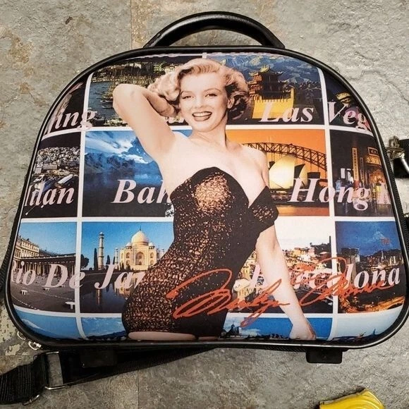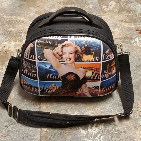 Marilyn Monroe Travel Bag Shoulder Crossbody Tote MAKEUP PERSONAL CARE measurements approximate Height 11" Length 13" Width 6" Handle 2" Adjustable Removable Crossbody/ Shoulder Strap Excellent Condition Same/ Next Day Shipping