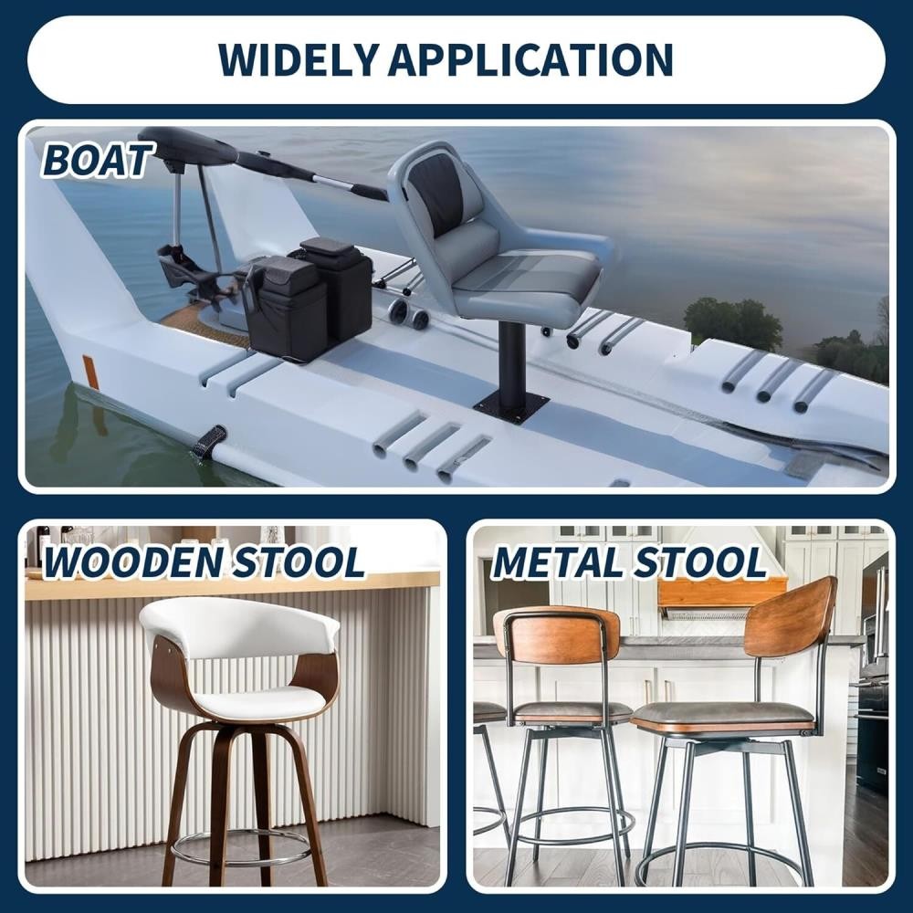 Specification: Stainless steel ball bearing swivel Ball-bearing with Nylon Slide Runners Swivels 360 degree 6.7"x6.7" square swivel,standard 5.2" x 5.2" pattern, 1.1" height. Hole pattern fits most boat seats & bar stools.