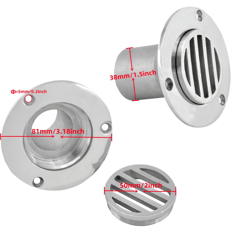 DESCRIPTION: 1.Material: 316 Stainless Steel 2.Color: Silver 3.Craft: Surface Polished 4.Flange Diameter: Approx. 81 mm/3.18 inch 5.Leakage Hole Diameter: Approx. 38 mm/1.5 inch 6.Mounting Hole Diameter: Approx. 5 mm/0.2 inch 7.Package Includes: 1 PCS -100% Brand new. -Easy to install,durable and corrosion resistant. -Suitable for drainage floor drains in bathrooms and kitchens of homes and ships. On Dec 30, 2025 at 01:39:01 PST, seller added the following information:
