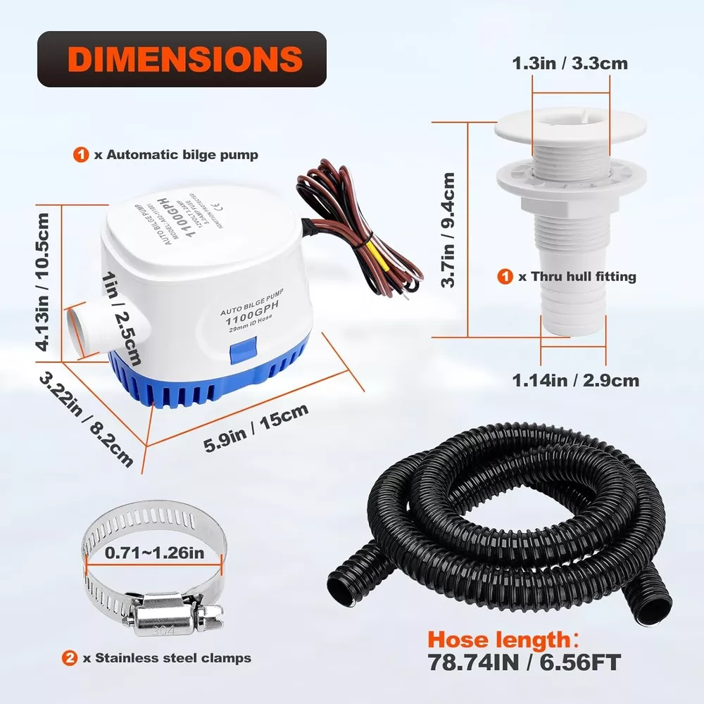 Marine-Grade 1100 GPH Automatic Bilge Pump with Hose & Thru-Hull Fittings ‹ › ‹ › ‹ › ‹ › ‹ › ‹ › ‹ › ‹ › ‹ › ‹ › Marine-Grade 1100 GPH Automatic Bilge Pump Equipped with Hose & Thru-Hull Fittings Key Features: Wide Application: Designed for a multitude of marine environments, our bilge pump is perfect for fishing boats, cruisers, speedboats, yachts, kayaks, and more. Engineered to endure even the harshest conditions. Automatic Functionality: This 12V pump features a built-in electronically controlled reed sensor system, eliminating the need for a separate float switch. With a powerful capacity of 1100 gallons per hour, it ensures swift and efficient water removal to keep your vessel secure and dry. Complete Package: The bilge pump plumbing kit includes the auto bilge pump, 6 FT of 1-1/8 inch diameter hose, 2 sturdy clamps, a thru-hull connector, and easy-to-follow instructions, allowing for a quick and hassle-free installation. Durable Construction: Crafted from high-quality, corrosion-resistant materials, this bilge pump is built to withstand the rigors of marine environments, guaranteeing long-lasting performance and reliability. Easy Installation: With comprehensive instructions and all necessary components included, the bilge pump kit is designed for straightforward installation. Should you have any questions, our dedicated support team is ready to assist. Why You Should Choose Our Bilge Pump: In the unpredictable world of boating, ensuring your vessel remains dry is of paramount importance. Our Marine-Grade 1100 GPH Automatic Bilge Pump offers peace of mind with its robust construction and reliable automatic operation. No need to fumble with multiple components—this all-in-one solution is crafted for simplicity and efficiency. Don’t risk complications on your aquatic adventures. Equip your boat with our exceptional bilge pump today and enjoy worry-free sailing, knowing you have the reliability of automatic water removal working for you! Shipping Free & Fast Shipping - We offer free shipping to most of the USA with a normal delivery time of 3-7 days. However, due to the current situation, additional delivery time (up to 3 weeks) may be required for some items. Alternative Carriers - We may use alternative carriers (e.g. USPS, FedEx, UPS, etc.) to ensure your package arrives safely and on time. Due to the use of multiple carriers, we are unable to provide a tracking number automatically. Handling Time - Orders are processed and shipped within 1-2 business days of receiving cleared payment. Shipping Restrictions - Shipping to Alaska, Hawaii, Puerto Rico, Guam, and other US territories may incur shipping charges or delivery restrictions. Please contact us before ordering, or your order can be refunded/cancelled. State Restrictions - There may be restrictions based on your state of purchase. For example, certain items may not be shipped to California due to state regulations. Contact for Tracking Updates - If you require tracking updates or have any concerns about the delivery of your order, please feel free to contact us, and we will be happy to assist you. Return 30-Day Hassle-Free Returns - We want you to be completely satisfied with your purchase. If you are not, you can return the item within 30 days of receiving it for a full refund or exchange. Easy Return Process - To start a return, simply contact us and we will provide you with a prepaid return shipping label and detailed instructions. Restocking Fee - There are no restocking fees for returns. However, the buyer is responsible for return shipping costs if the return is not due to a seller's error. Refund Processing Time - Refunds will be processed within 5 business days of receiving the returned item in its original condition. Payment We accept all major credit cards, PayPal, and Apple Pay for your convenience. Your payment information is secure and encrypted to ensure a safe and seamless transaction. Please complete your payment within 3 days of purchase to avoid any delays in shipping. Feedback Your feedback is extremely important to us. We strive to provide the best products and customer service possible. If you are satisfied with your purchase, please take a moment to leave us a positive review. If you have any concerns or issues with your order, please contact us before leaving negative feedback. We are committed to resolving any problems and ensuring your satisfaction. Contact Us If you have any questions or concerns, please feel free to reach out to our customer support team. You can contact us through the eBay messaging system. We are available Monday to Friday, 9:00 am to 5:00 pm EST, and we will do our best to respond to your inquiry within 24 hours. Buy it now and enjoy a pleasant shopping experience! Manufacturer Part Number: Boat Bilge Pump UPC: Not Set Brand: Unbranded Warranty: No Warranty Country/Region of Manufacture: Not Set