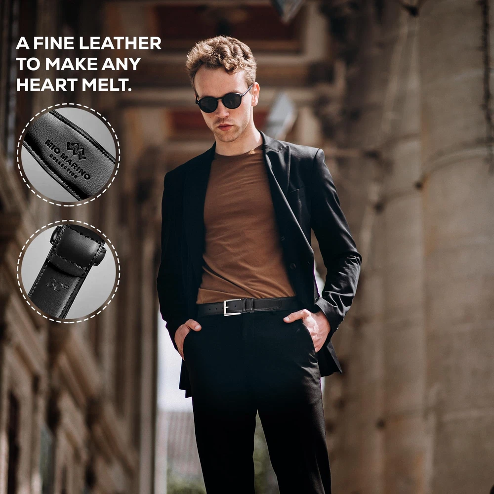 Marino’s Men Genuine Leather Dress Belt with Single Prong Buckle. HIGH QUALITY CRAFTMANSHIP. Marino’s leather belt for men are highly constructed for a longer endurance and better upholding. Our belt men are hand washable VERSATILE. Our mens belts casual are ideal accessory to wear as everyday belts, go great with uniform, jeans or formal wear. These mens leather belt ensure a consistently fashionable choice for any occasion PRODUCT DIMENSIONS. Our dress belts for men strap is 1 1/8 inch wide allows the buckle tongue to be set anywhere SINGLE PRONG BUCKLE. Our work belt are made with alloy to create a substance with greater strength and resistance to corrosion. ORDER WITH GRACE. Marino’s swift exchange policy enables you to purchase these genuine leather belts for men without hesitation! 100% satisfaction is guaranteed with our mens work belt, 30 days’ free exchange and return policy.