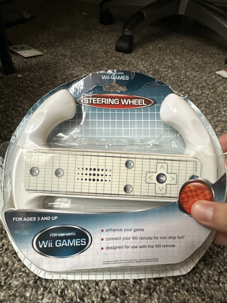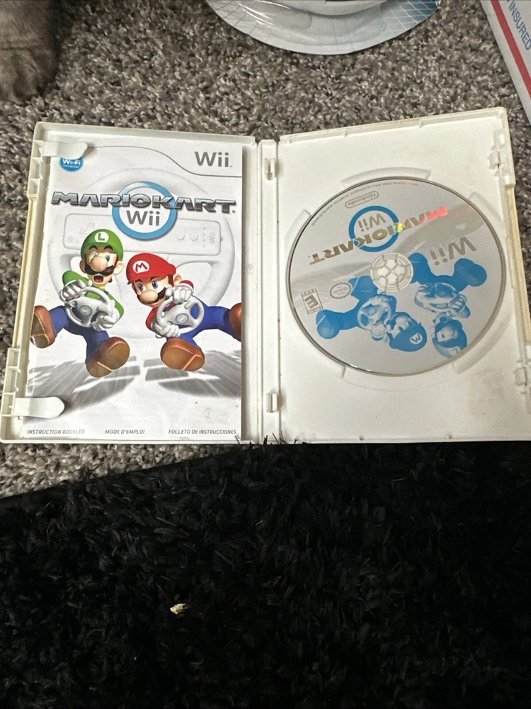 Mario Kart Wii Plus 3rd Party Steering Wheel. Minor scratches on the game but come CIB. The steering wheel is still in its box.