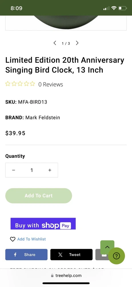 Mark Feldstein Limited Edition 20th Anniversary Singing Bird Wall Clock 13 Inch in Matte Green NEW OPEN BOX ITEM - CLOCK HAS BEEN TESTED AND SOUNDS GREAT! SEE VIDEO Requires 3 AA batteries (not included)