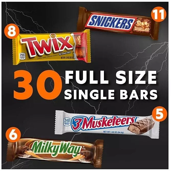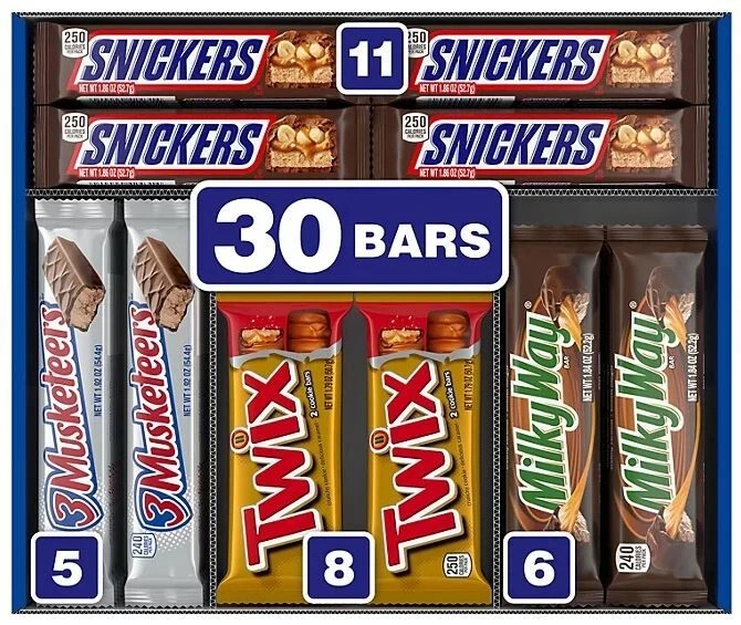 Indulge in the delectable taste of Mars Chocolate Candy Bars with this variety pack of 30 full-sized bars. These candy bars are perfect for any occasion and are sure to satisfy your sweet tooth cravings. Made by the renowned brand Mars, these bars are made with high-quality ingredients to ensure great taste. Please note that these candy bars contain peanuts and tree nuts, so they are not suitable for individuals with allergies. The product is categorized under Chocolate Sweets & Assortments, Sweets & Chocolate, Pantry, Food & Beverages, and Home & Garden. Get your hands on this delicious treat today and enjoy the creamy and chewy texture of Mars Chocolate Candy Bars.