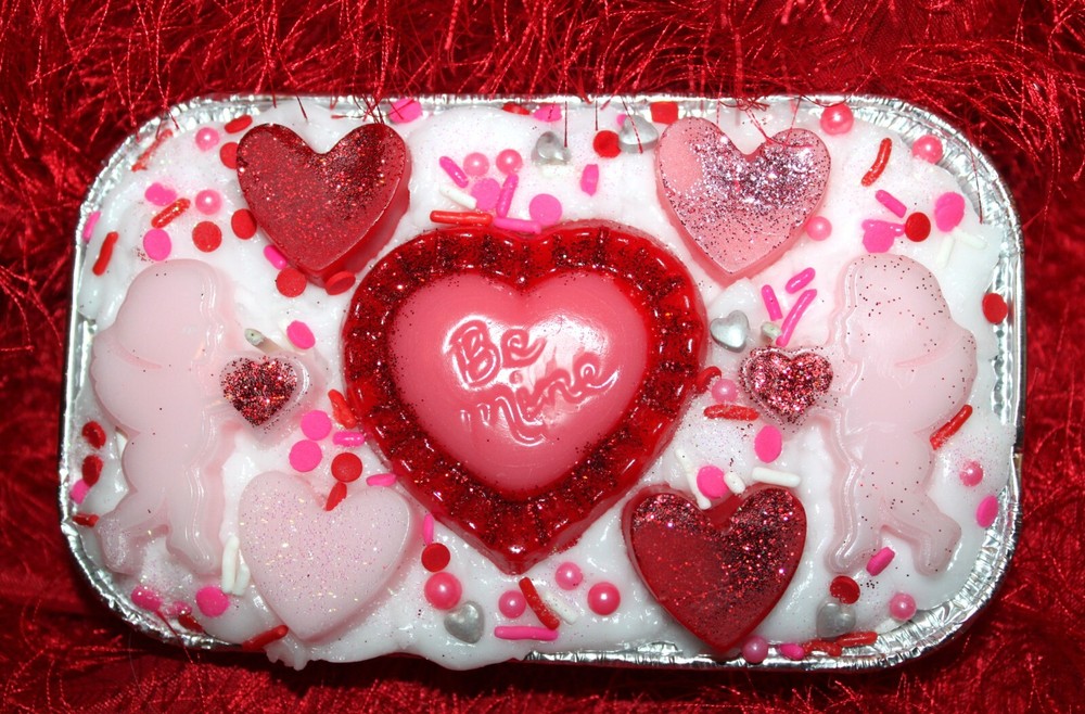 **** SHIPPING IS OFTEN CALCULATED HIGH WHEN PURCHASING MORE THAN 1 ITEM SO FEEL FREE TO MESSAGE ME FOR A SHIPPING QUOTE **** When combining purchases please click on "request total from seller" at checkout and wait for me to send you a invoice with combined shipping. If you are using your phone this option may not be available and if so just message me and I can make you a listing with everything combined and the correct amount on shipping. Thank You ;) ++++ If you want this candle in a different scent, please contact me for a scent change request. ++++ This is my handmade highly scented grubby loaf candle. It weighs approx. 1 lb. and is in an aluminum 5" bread loaf pan. It is scented to the max with MARSHMALLOW MUSK. A delightful blend of creamy vanilla and fluffy marshmallows, wrapped in the warmth of amber. This rich, sweet aroma captures the perfect balance of cozy and indulgent. I put cupids, hearts, sprinkles, glitter and a Be Mine heart in the middle. This is a perfect one of a kind Valentine's gift. Much prettier in person too. It is recommended that you burn your candle on a plate or in a bowl to catch any over spill. Candle will arrive in a cello bag tied with a homespun bow and labeled so it will be gift ready. International Buyers : Please contact me for shipping quote. Shipping I strive to ship within 48 hours of payment received not including weekends and holidays. I ship USPS Priority or Parcel Post and for the heavier orders I can ship Fed-Ex. I do offer USPS Flat Rate shipping as well. Insurance is the buyers responsibility. I am always happy to combine auctions to save you money on shipping fees and I only change actual shipping costs. Please email with any shipping questions or quotes if needed. Thanks for stopping by! Please do come back again soon~ WARNING Burn within sight. Keep away from flammable objects. Keep away from children and pets. Burning Instructions: Trim wick to 1/4" before lighting. Keep candle free of any foreign materials including matches and wick trimmings, Only burn the candle on a level, fire resistant surface. Do not burn candle for more than four hours at a time. Stop use when only 1/4" of wax remains. *** Please note I do not accept returns for used merchandise. Must be returned in same condition as received. *** RETURNS ARE ONLY ACCEPTED IF ITEM HAS BEEN MISREPRESENTED