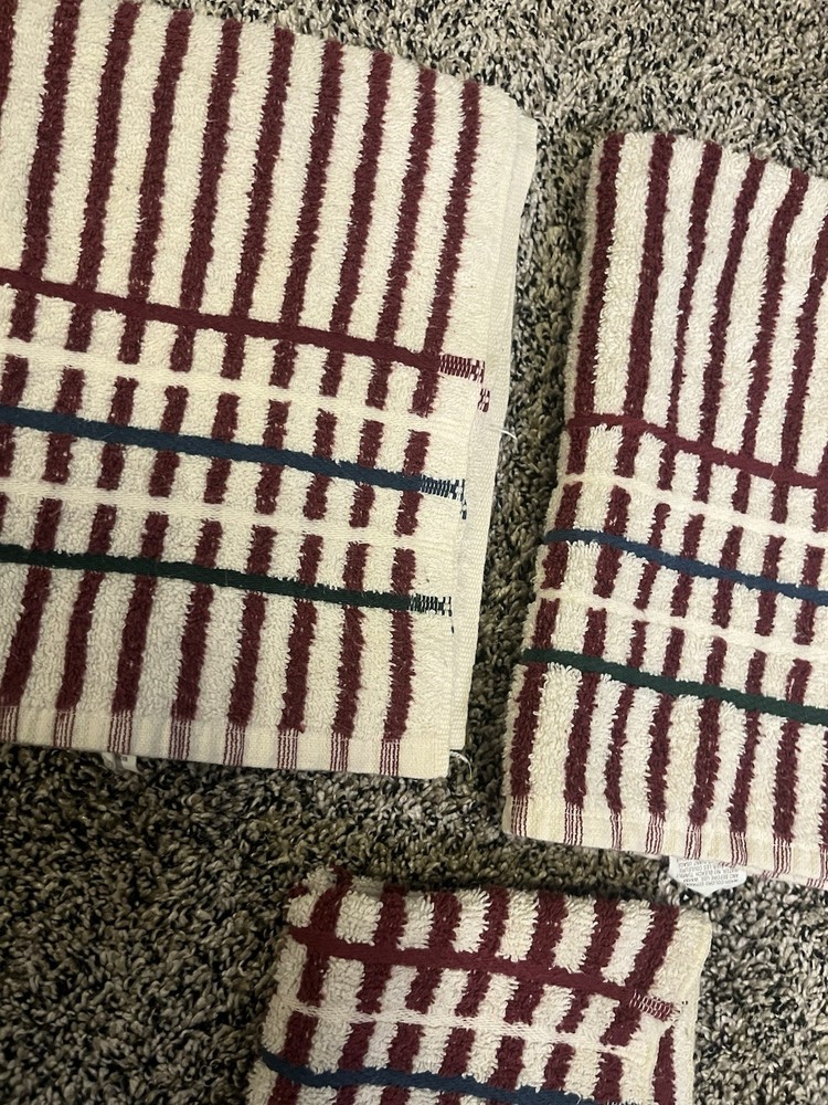 Martex Cotton Terrycloth Hand Towel Set with Washcloth in Red White Stripes