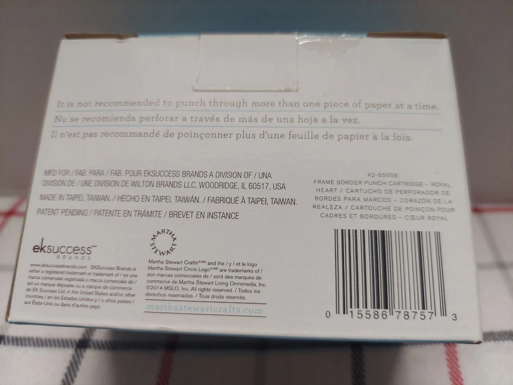 This Martha Stewart Crafts Frame Border Punch Cartridge in the Royal Heart model is a must-have for any scrapbooking enthusiast. The intricate design of the punch allows you to create stunning borders and frames for your photos and paper crafts. With its durable build and reliable performance, this punch cartridge is perfect for both beginners and experienced crafters. It is compatible with most standard-sized punch machines and can be used to add a touch of elegance and sophistication to your scrapbooking projects. Add this cartridge to your collection today and let your creativity soar!