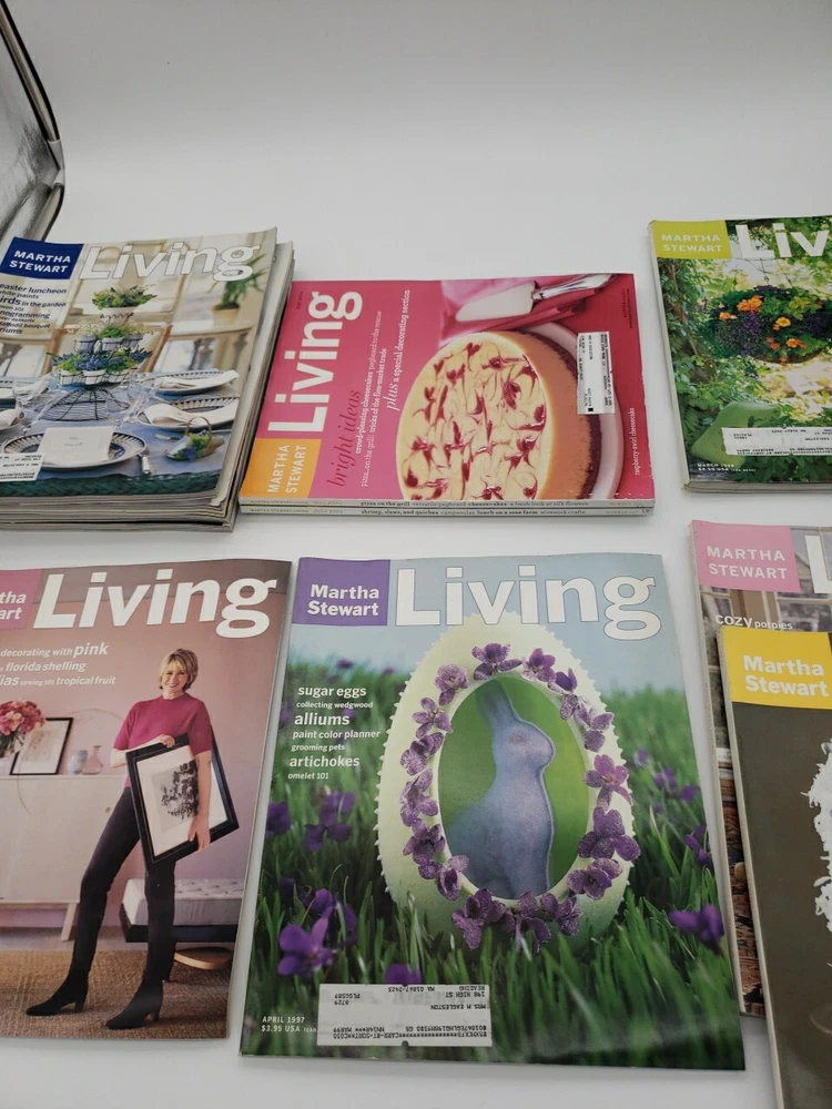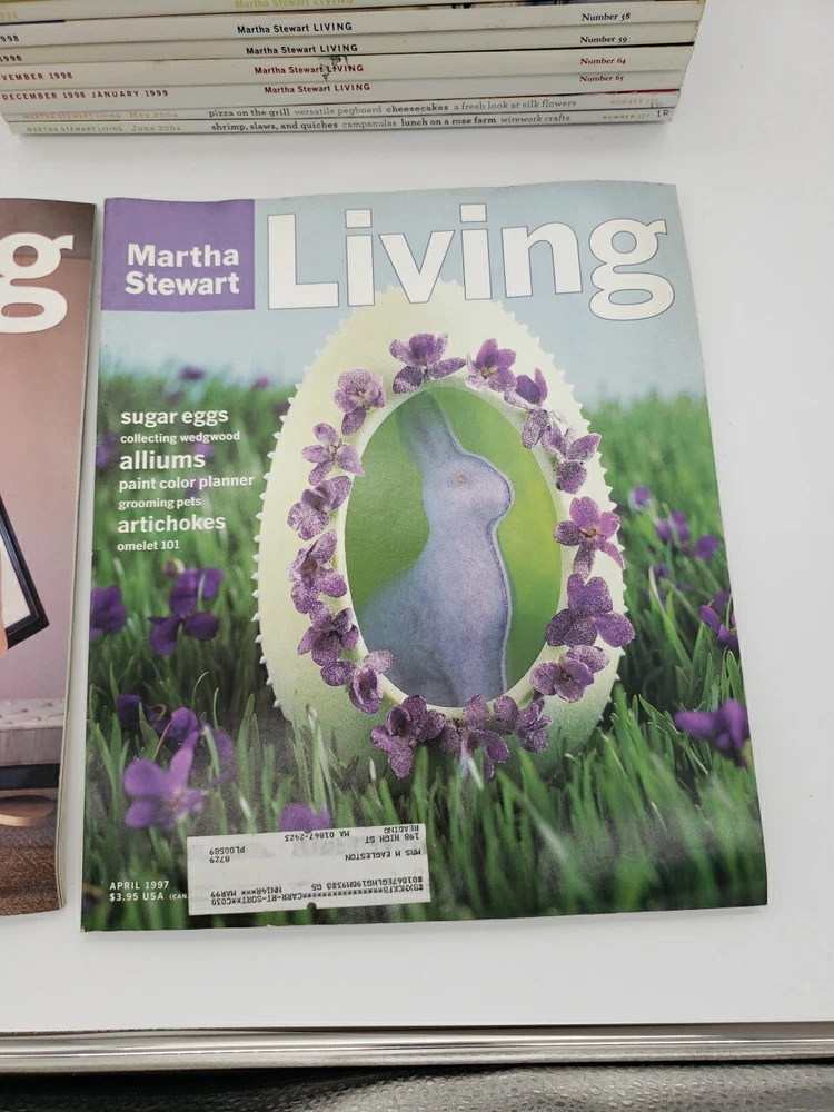 Lot of 11 Martha Stewart Living Magazine. 1997, 1998, 1999 and 2004. 1997 (Feb,April,May) 1998 (Feb,Mar,Apr,May,NovDec/Jan 98) 2004 (May,June). Feb 97 has light coffee cup ring as shown in photo.