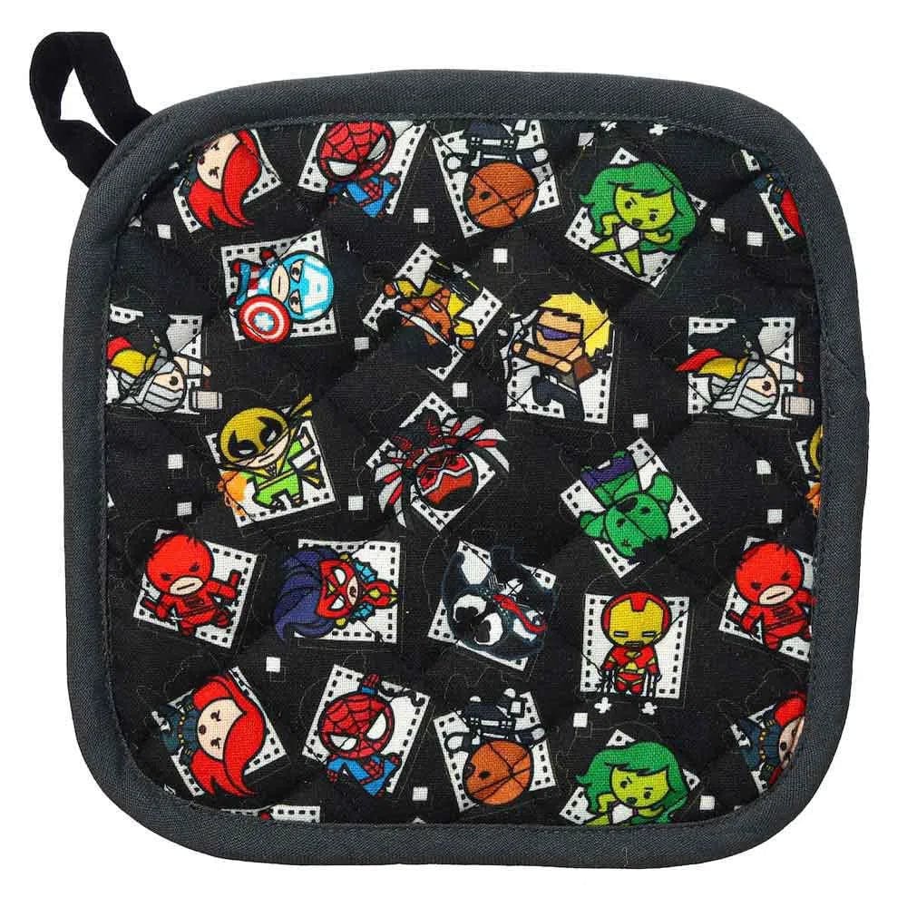 Marvel - Chibi Superheroes Hot Pad & Tea Towel Set - Bioworld Condition: New Bring the dynamic world of Marvel into your kitchen with Bioworld's Multiple Character Hot Pad & Tea Towel Set of 2. These kitchen essentials are screen-printed in rich colors, showcasing a vibrant array of iconic Marvel characters. The kitchen towel, designed for everyday cleanups, adds a touch of superhero flair to your culinary space, making chores more enjoyable. The hot pad complements the set with practical functionality and striking visuals, ensuring your kitchen is both stylish and well-equipped. Elevate your cooking experience with this set that celebrates the legendary characters of the Marvel universe. Bioworld's Marvel Multiple Character Hot Pad & Tea Towel Set of 2 is a must-have for Marvel enthusiasts and home chefs alike. The screen-printed designs capture the essence of beloved characters, transforming your kitchen into a superhero haven. The kitchen towel, perfect for daily use, brings excitement to routine tasks, while the hot pad provides essential protection with a pop of Marvel style. Whether you're a fan of Iron Man, Spider-Man, or the entire Marvel lineup, this set adds a dash of superhero magic to your kitchen, making every meal preparation an adventure. Product Features: Dish Towel Dimensions: 19 x 25 in. Hot Pad: 7 x 7 in. Care: Machine wash cold with like colors, No bleach, Tumble dry low or line dry Screen-printed in rich colors Kitchen towel great for everyday clean-ups Imported Browse what else we have in stock - thousands of toys, games, and other fun merchandise from Poggers, the best toy store in the world!