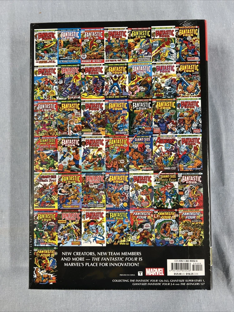 Marvel Comics FANTASTIC FOUR Omnibus Volume #5 Hard Cover (2024) Global Shipping Description: Marvel Comics FANTASTIC FOUR Omnibus Volume #5 HC (2024) Global Shipping (W) Roy Thomas, Various (A) John Buscema, Various (CA) Rich Buckler You didn't think we were going to stop with Vol. 4, did you? Marvel presents a fifth oversized Omnibus of the series that started it all! Roy Thomas, Gerry Conway, John Buscema and Rich Buckler continue the FF's adventures as the Frightful Four launch a surprise attack with their newest member - Thundra - that pushes Reed and Sue to the breaking point! And when Sue leaves the team, an Inhuman joins the FF. Who will it be? Also featuring Agatha Harkness, world's creepiest babysitter; Annihilus' plan to harness the enormous powers of Franklin Richards; the return of the Silver Surfer; Namor's invasion of New York; a royal wedding; and, of course, Doctor Doom! Plus: All four of the FF's Giant-Size adventures, letters pages and more! Collecting FANTASTIC FOUR (1961) #126-163, GIANT-SIZE SUPER-STARS #1, GIANT-SIZE FANTASTIC FOUR (1974) #2-4 and AVENGERS (1963) #127. Rated T. 1008 pages Omnibus is New, in Near Mint / Mint unread factory shrink wrapped condition Payment We prefer Paypal payment but also accept all approved eBay payments. Buyer must send payment within 3 days of purchase. Please include listing number in your payment. Shipping Buyer pays $6.95 for MEDIA MAIL shipping for orders in the UNITED STATES. Combine shipping is available at NO additional cost for in the United States. For international orders please email us for exact shipping cost. We accept Chks, Mo and credit cards via Paypal. Please check out our other auctions, EBAY store listings. Thanks for looking.