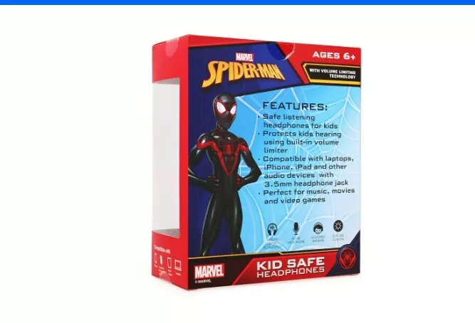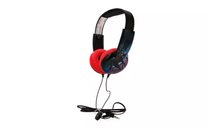 Enjoy your music with these Marvel Spider-Man Kid Safe Headphones. With a double earpiece and a headband form factor, these headphones are perfect for kids. The 4ft cable length provides enough room to move around while listening to music. These headphones come in a vibrant red color and have a built-in on/off switch for easy use. The adjustable headband and soft ear cushion ensure a comfortable fit for extended listening sessions. With a frequency range of 20 Hz and a driver size of 30mm, these headphones provide great sound quality. The headphones are suitable for kids and have features like volume control, volume limitation, and an in-line microphone.