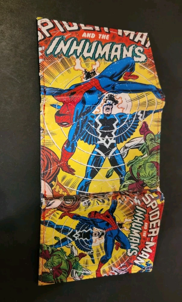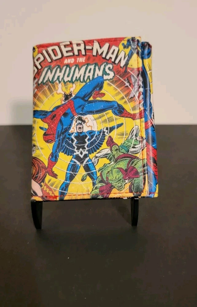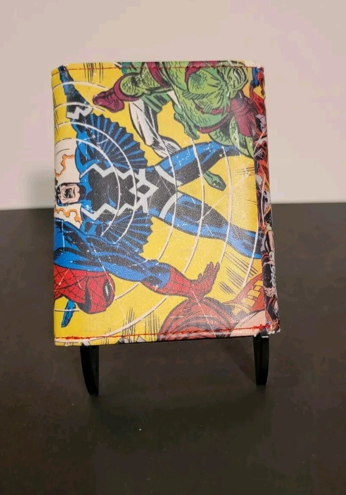 This Marvel Spiderman Tri-fold Wallet features a vibrant comic design with a simulated leather construction, providing a stylish accessory for fans of the iconic Spider-Man character. The wallet includes multiple compartments for organizing cards, cash, and more, making it functional in addition to its eye-catching appearance. Ideal for men who appreciate the world of comics and want to showcase their fandom in their everyday accessories.