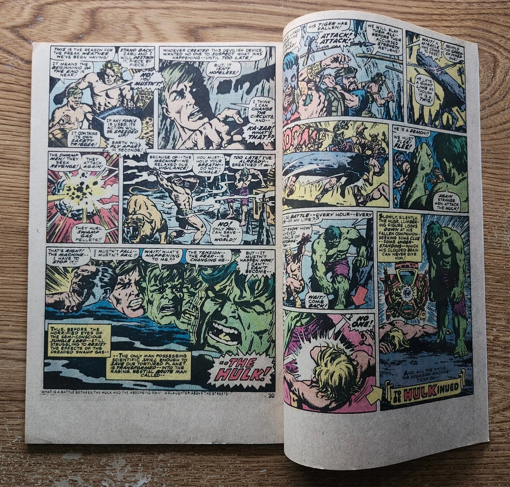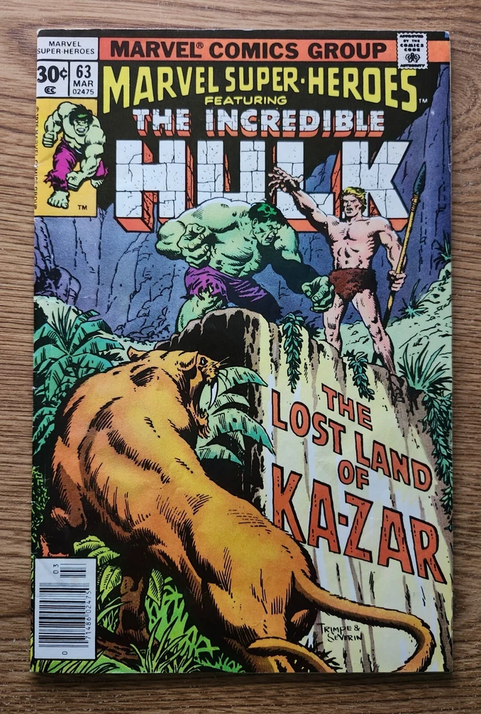 Era:Bronze Age (1970-83)Unit of Sale:Single UnitGenre:SuperheroesVintage:YesCountry/Region of Manufacture:United StatesCharacter:Hulk (Bruce Banner), Ka-Zar (David Rand)Story Title:The Incredible Hulk and The Lost Land Of Ka-Zar!Superhero Team:Avengers, DefendersTradition:US ComicsPersonalized:NoFeatures:First Printing, Boarded, Dust Jacket, Vintage PaperbackPublication Year:1977Signed:NoIntended Audience:General AudienceLanguage:EnglishCover Artist:VariousPublisher:Marvel ComicsType:Comic BookFormat:SoftcoverArtist/Writer:VariousSeries Title:The Incredible HulkIssue Number:63Universe:Marvel (MCU)Grade:8.5 Very Fine+Style:ColorInscribed:No