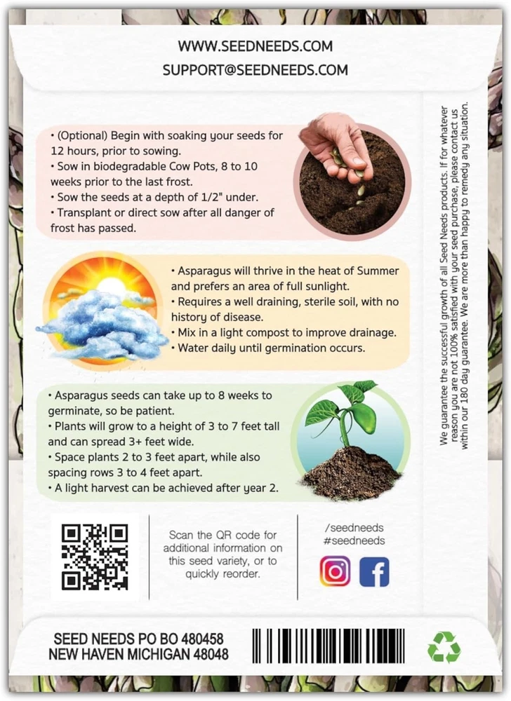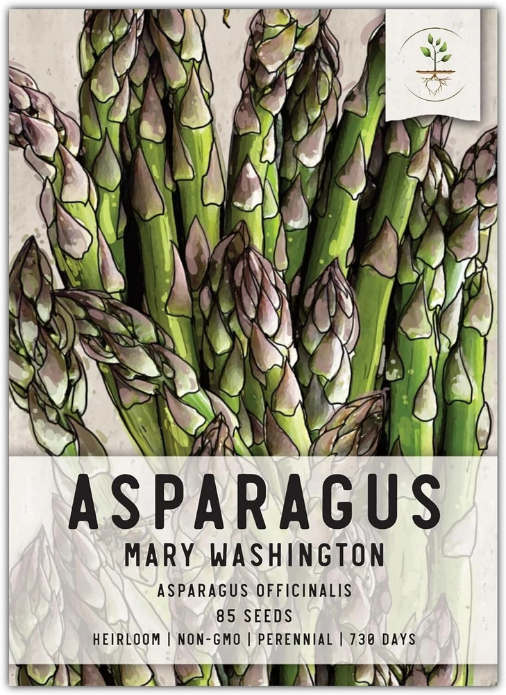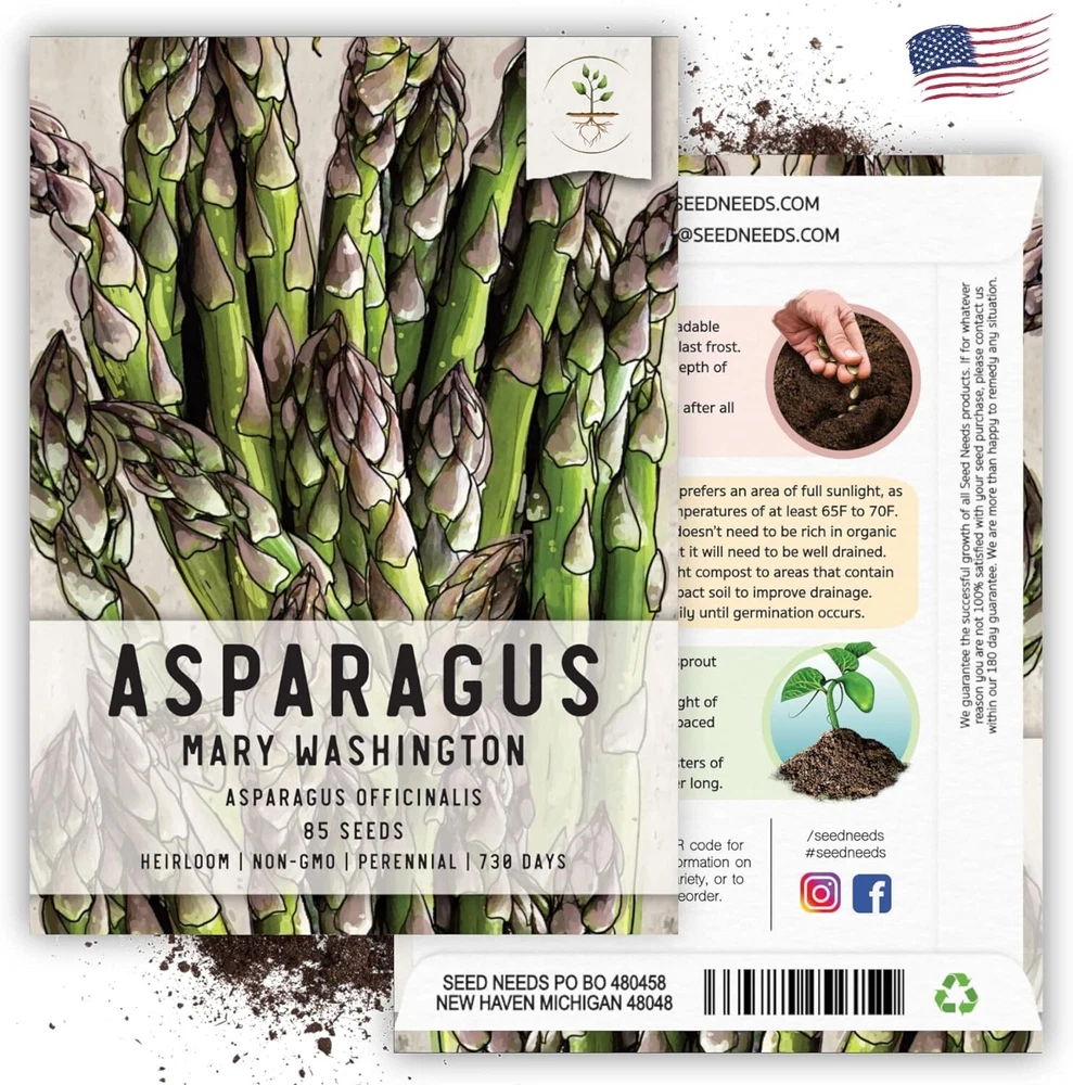 Mary Washington Asparagus Seeds - 85 Heirloom Seeds for Planting Asparagus officinalis - Perennial Crops for an Outdoor Garden, Non-GMO & Untreated 1 Pack QUALITY - All seeds packaged by are intended for the current and the following growing seasons. All seeds are stored in a temperature controlled facility that is free of significant amounts of moisture. QUANTITY - Seed packets by offer generous quantities. You can share with friends and family, or save your extra seeds until the next season, if properly stored. PACKETS - Each packet displays a beautiful illustration of the variety to be grown, as well as detailed seed sowing information on the reverse side as well. Measures ” wide by ” tall. PROMISE - will never knowingly supply GMO based seed products. The vast majority of our seeds are open pollinated & heirloom, with the exception of a few hybrids. GERMINATION - packets contain some of the freshest seed available. Direct from the growers. If sown correctly, you will begin seeing results in only a matter of days. PACKAGING - All seeds are packed in tear resistant and moisture resistant packaging. Keeping them fresh longer than the competition.