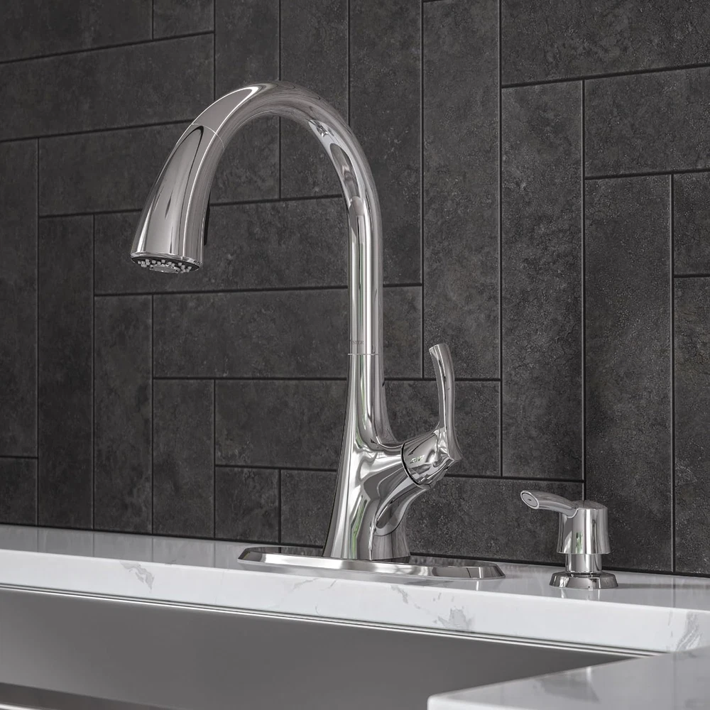 Store New Arrivals Add to Favorite View Feedback Contact Masey Kitchen Faucet with Pull down Sprayer and Soap Dispenser, Single Handle, High Arc, Polished Chrome Finish, F5297MCC Description Item model number F5297MCC Style Cottage Hole Count 1 Country of Origin China Warranty Type limited Maximum Flow Rate 1.8 Gallons Per Minute Number of Pieces 1 Batteries Required? No Finish chrome Material Metal Installation Type Single Hole Model Name Masey Finish Type chrome Item Package Quantity 1 Spout Design Gooseneck Number of Handles 1 Item Weight 7.72 pounds Special Features Pull Down Sprayer Special Feature Pull Down Sprayer Part Number F5297MCC Mounting Type Deck Mount Color Polished Chrome Recommended Uses For Product Kitchen Included Components Masey 1-Handle Pull-Down Kitchen Faucet with Soap Dispenser in Polished Chrome Handle Type Lever Product Dimensions 9.03"D x 13"W x 14.56"H KITCHEN FAUCET WITH PULL DOWN SPRAYER – Advanced spray head docking system; elegant forward handle design underscores ergonomic function and helps where space behind the faucet is limited; includes decorative deckplate and soap dispenser PULL DOWN SPRAYER – Kitchen faucet features a pull down sprayer with a toggle button to select spray or stream modes conveniently in the palm of your hand ADVANCED SPRAY HEAD DOCKING – AccuDock ensures that the pull-down sprayer stays firmly in place when docked; powerful, spring-loaded arms inside of the spout are designed to grip the sprayer and hold it in place for reliable performance with every use HIGH ARC SPOUT – Features high arc spout for added clearance and reach; the rotating spout swivels to allow for greater versatility like hand washing delicates and sink cleaning QUICK TO INSTALL – Convenient Quick Install Tool included to speed up installation; Pfast Connect technology securely connects water supply lines with a quick click NO MORE LEAKS – Features Pforever Seal advanced ceramic disc valve technology that will never leak; also includes 36-inch integrated PE-RT supply lines with female fittings; no need to purchase separate water-supply connection lines NO PUTTY NEEDED – TiteSeal mounting technology simplifies installation and eliminates the need for putty or silicone; faucet mounted on countertop; 1, 2, 3, or 4-hole installation EASY TO CLEAN – Wipe clean nozzles let you to swipe away mineral deposits with a finger; only use a soft damp cloth to clean and shine; avoid use of polish, detergents, abrasive cleaners, organic solvents, or acid which may cause damage WATER-EFFICIENT KITCHEN SINK FAUCET – Rated to meet or exceed CALGreen criteria, which helps to conserve water in the average home by at least 20 percent LIMITED – Trusted since 1910, Pfister Faucets has been a leader in quality plumbing products; all faucets are backed by our Limited , covering finish and function for as long as you own your home Some designs get it just right without breaking the bank. The Masey family showcases renowned Pfister quality. Clean and streamlined, Masey complements styles ranging from coastal cottage to urban cool. Balanced for perfect harmony, Masey is ready to make your remodel come together or provide the inspiration for a timeless upgrade. ABOUT US We offer the best prices around on high quality products. Our E-store includes media such as books, movies, music and games while offering electronics, toys, sporting apparel, clothing, tools, general home, garden items and more. SHIPPING We are always working hard to ensure your package arrives as soon as possible. Please understand that some factors like weather, high postal traffic, and the performance of shipping companies are outside of our control. We offer free shipping to the lower 48 states and ship within 2 business days of payment, usually sooner. We do not accept P.O. Boxes. Please provide a physical address. For shipping outside of the continental USA, we only use eBay's Global Shipping Program.The item is shipped to KY and then sent to the rest of the world. International customers are responsible for all duties and taxes. Continue to check out in order to calculate costs for shipping the item to your country. Messages regarding eBay's Global Shipping Program MUST be directed at eBay EXCLUSIVELY. RETURNS We offer a 30-Day Return Policy on items which you are not completely satisfied with. You have the option for a full-refund or an exchange of the item. No returns are available on items shipped outside of the USA. PAYMENT We accept PayPal. CONTACT US This page content is yet to come Please ad us to your favorite seller and visit again later Thank You CUSTOMER SATISFACTION We try our very best to make sure every customer is completely satisfied. If there's a problem, message us! We're happy to help. WE ACCEPT Copyright © 2021 AutoDS. | All Rights Reserved