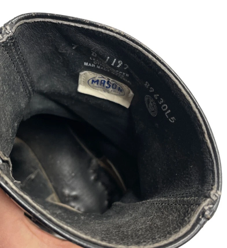 Type: Boot Toe Shape: Round Toe Accents: Embroidered Color: Black Pattern: Western Closure: Zip Vintage: Yes Theme: Cowboy Upper Material: Leather Style: Western Features: Comfort Brand: Mason US Shoe Size: 7 Shoe Width: D Department: Men