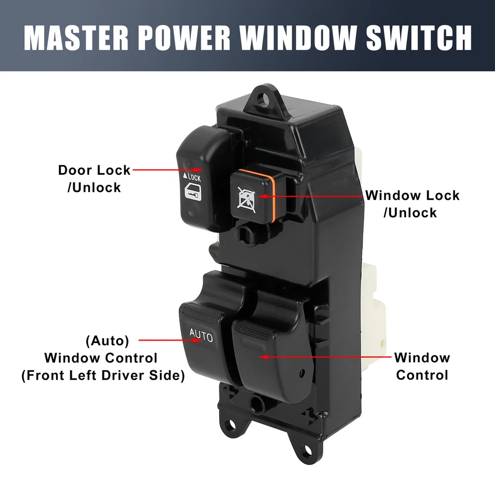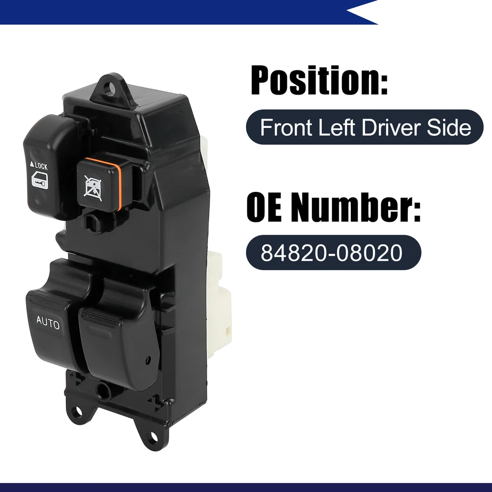 Document Specification:Condition: Brand NewMaterial: Plastic, MetalColor: BlackPlacement on Vehicle: Front Left Driver SideOE Number: 84820-08020Pin Number: 13Button Function: Door Lock/Unlock, Window Lock/Unlock, Auto Window Control (Front Left Driver Side), Window ControlFitment:for Toyota Sienna 2001-2003Installation:Use a skid to pry the old switch out carefully.Pull out the plug from the old switch.Connect the new switch to the wiring harness.Finally, install it into the bezel bracket.Note:This is a non-OEM product, accessory only.Please allow 1-3 mm difference due to manual measurement.Make sure this is the correct application type of power window switch before placing order.Package Included:1 x Car Power Window Switch Master Driver Side Power Window Switch fits for Toyota Sienna 2001-03 - 1 pcs Specification: Condition: Brand New Material: Plastic, Metal Color: Black Placement on Vehicle: Front Left Driver Side OE Number: 84820-08020 Pin Number: 13 Button Function: Door Lock/Unlock, Window Lock/Unlock, Auto Window Control (Front Left Driver Side), Window Control Fitment: for Toyota Sienna 2001-2003 Installation: Use a skid to pry the old switch out carefully. Pull out the plug from the old switch. Connect the new switch to the wiring harness. Finally, install it into the bezel bracket. Note: This is a non-OEM product, accessory only. Please allow 1-3 mm difference due to manual measurement. Make sure this is the correct application type of power window switch before placing order. Package Included: 1 x Car Power Window Switch ITEM SPECIFICS Brand X AUTOHAUX To Control Window Placement on Vehicle Front Left Driver Side Color Black Product Name Car Power Window Switch Net Weight 143g Shell Color Black Material Plastic, Metal Dimension 12.8x7.1cm / 5.04"x2.80"(L*W) Package Content 1 x Car Power Window Switch Other Part Number UB9G66350 Note This is not oem product,accessory only. NOTICE If you have any questions, please feel free to contact our customer service. Our response will be faster than eBay! Our Handling Time: within 24 hours on weekdays eBay Handling Time: 72 hours ABOUT US SHIPPING POLICY PAYMENT RETURN CONTACT US We are committed to providing professional, safe and effective personal care products. We strive to provide customers loved products at the competitive price. We work with suppliers to discover practical, easy-to-use personal care products. Our store not only offers quality products at the competitive price, but also has professional customer service, offers you comfortable shopping experience. Please don't forget to follow us on eBay. We will continue to update and provide more and more practical personal care products. switchpart thank you for your business! We work hard to safely and securely ship your order in the least amount of time. Storewide free shipping in United States. All our items will be shipped to buyer's address, please confirm your address on eBay before you purchase. Taxes and other charges are included in the item price or shipping charges. Buyers are responsible for these charges. We accept payment methods show in payment details. Payment must be received within 7 days of auction closing. According to eBay guidelines, all unpaid purchases case will be opened automatically. If you need to specify the color or other information for the items you purchased, please Click here to contact us directly with item # and your eBay ID. We offer a 30 day return policy. This is under the following conditions: The item must be unused and in a resalable condition otherwise are not eligible for a refund. All items returned by post are returned at your expense, we cannot be held responsible for this. Please use a traceable service. Generally we answer emails within 24 hours (excluding weekends & holidays). Questions or comments? We welcome your inquiry! Please feel free to contact us directly. Description Policy Master Driver Side Power Window Switch fits for Toyota Sienna 2001-03 - 1 pcs Specification: Condition: Brand New Material: Plastic, Metal Color: Black Placement on Vehicle: Front Left Driver Side OE Number: 84820-08020 Pin Number: 13 Button Function: Door Lock/Unlock, Window Lock/Unlock, Auto Window Control (Front Left Driver Side), Window Control Fitment: for Toyota Sienna 2001-2003 Installation: Use a skid to pry the old switch out carefully. Pull out the plug from the old switch. Connect the new switch to the wiring harness. Finally, install it into the bezel bracket. Note: This is a non-OEM product, accessory only. Please allow 1-3 mm difference due to manual measurement. Make sure this is the correct application type of power window switch before placing order. Package Included: 1 x Car Power Window Switch ITEM SPECIFICS Brand X AUTOHAUX To Control Window Placement on Vehicle Front Left Driver Side Color Black Product Name Car Power Window Switch Net Weight 143g Shell Color Black Material Plastic, Metal Dimension 12.8x7.1cm / 5.04"x2.80"(L*W) Package Content 1 x Car Power Window Switch Other Part Number UB9G66350 Note This is not oem product,accessory only. NOTICE If you have any questions, please feel free to contact our customer service. Our response will be faster than eBay! Our Handling Time: within 24 hours on weekdays eBay Handling Time: 72 hours ABOUT US We are committed to providing professional, safe and effective personal care products. We strive to provide customers loved products at the competitive price. We work with suppliers to discover practical, easy-to-use personal care products. Our store not only offers quality products at the competitive price, but also has professional customer service, offers you comfortable shopping experience. Please don't forget to follow us on eBay. We will continue to update and provide more and more practical personal care products. switchpart thank you for your business! SHIPPING POLICY We work hard to safely and securely ship your order in the least amount of time. Storewide free shipping in United 