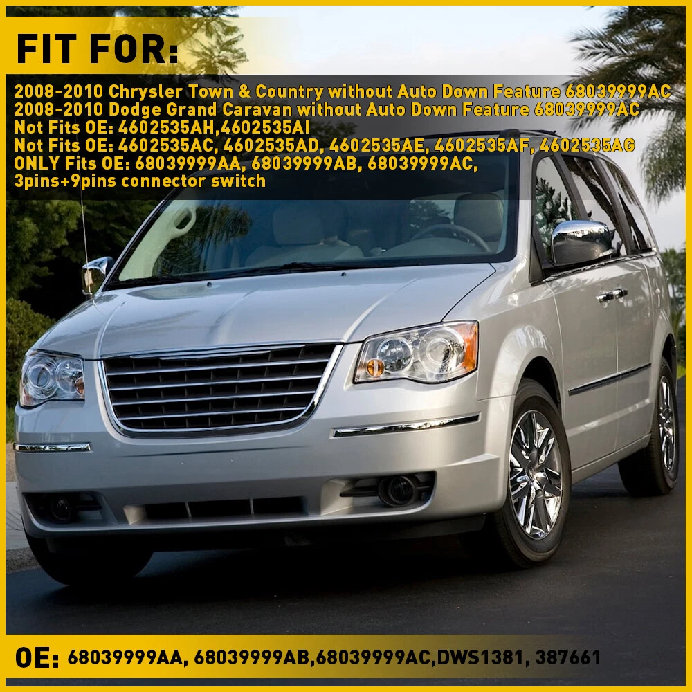 Window Control Switch Fits For Dodge, Jeep,Ram etc Fits for: 2008-2010 Chrysler Town & Country without Auto Down Feature 68039999AC 2008-2010 Dodge Grand Caravan without Auto Down Feature 68039999AC Not Fits OE: 4602535AH,4602535AI Not Fits OE: 4602535AC, 4602535AD, 4602535AE, 4602535AF, 4602535AG ONLY Fits OE: 68039999AA, 68039999AB, 68039999AC,3pins+9pins connector switch Specifications: Pin quantity: 3+9pin AUTO:0 Features: *Better stability with longer service life. *This power window switch fits, functions and matches the appearance of the old one for a perfect replacement. Master Power Door Window Control Switch For 2008-2010 Chrysler Town Country Window Control Switch Fits For Dodge, Jeep,Ram etc Fits for: 2008-2010 Chrysler Town & Country without Auto Down Feature 68039999AC 2008-2010 Dodge Grand Caravan without Auto Down Feature 68039999AC Not Fits OE: 4602535AH,4602535AI Not Fits OE: 4602535AC, 4602535AD, 4602535AE, 4602535AF, 4602535AG ONLY Fits OE: 68039999AA, 68039999AB, 68039999AC,3pins+9pins connector switch Specifications: Pin quantity: 3+9pin AUTO:0 Features: *Better stability with longer service life. *This power window switch fits, functions and matches the appearance of the old one for a perfect replacement. * Direct replacement without other tools. * It has undergone simulation and endurance testing to ensure proper fit and performance. Packaging include: Window control switch*1 Item Specifics Brand AUXITO Manufacturer Part Number Does Not Apply Manufacturer Warranty 1 Year Type Window control switch Fitment Type Direct Replacement Features Durable,Easy Installation Package Include Window control switch*1 Universal Fitment No Custom Bundle No Modified Item No Pin quantity 3 9pin AUTO 0 Payment We accept PayPal via eBay Secure Check-Out only. Immediate payment needs to be processed for items with Add to Cart option so that any promotional discounts can be applied to your order immediately. Shipping 1 .We do everything we can to ship your orders out as soon as possible. 2. Shipping and Handling: We process orders within two business day after the payment was clear. Returns Our 30-day Satisfaction Guarantee assures our customers that they will receive all orders promptly and exactly as described. In addition, it allows customers to return new and unused products in their original factory condition for any reason within 30 days from the date of purchase. 1. All returns must be pre-approved by AUXITO and have a return merchandise authorization(RMA) number. Unauthorized returns will not be accepted. 2. Buyers are responsible for appropriate packing, returning shipping cost, insurance and returning the item in "new" condition. Used items will not be accepted for return. 3. We will replace the returning item with an identical item, issue a full store credit or a full refund. Contact Us Our Working Time:(GMT+8)Monday to Friday,9:00-18:00. For inquires and customer support, please send your email via ebay email system. All emails will be responded to within 24 hours during business days. Feedbacks 1. We appreciate your business and strived to improve our customer service and our commitment to quality. 2. We will leave a positive feedback immediately after payment is received. We appreciate a positive feedback as much as you do. 3. If for some reason there is any issue with the purchase, please contact us prior to leaving feedback, and we will be glad to work with you to have it resolved. DESCRIPTION PAYMENT SHIPPING RETURN POLICY CONTACT US Hot Item Fit For 2015-2019 Hyundai Center Light Gray Sonata Armrest Console Lid Cover USD 12.34 146PCS For Toyota RAV4 Fender Door Hood Bumper Trim Clip Retainer Fastener Kit USD 10.92 4" Red Truck Long Performance High Flow Cold Air Intake Cone Dry Filter Cotton USD 27.54 Waterproof Motorcycle Handlebar Dual USB Phone Charger Cigarette Lighter Socket USD 13.29 190 PCS Bumper Fender Moulding Side Garnish Grille Retainer Clip ABS Various USD 10.44 Hot Item Waterproof Motorcycle Handlebar Dual USB Phone Charger Cigarette Lighter Socket USD 13.29 Fit For 2015-2019 Hyundai Center Light Gray Sonata Armrest Console Lid Cover USD 12.34 146PCS For Toyota RAV4 Fender Door Hood Bumper Trim Clip Retainer Fastener Kit USD 10.92 4" Red Truck Long Performance High Flow Cold Air Intake Cone Dry Filter Cotton USD 27.54 190 PCS Bumper Fender Moulding Side Garnish Grille Retainer Clip ABS Various USD 10.44 Master Power Door Window Control Switch For 2008-2010 Chrysler Town Country Window Control Switch Fits For Dodge, Jeep,Ram etc Fits for: 2008-2010 Chrysler Town & Country without Auto Down Feature 68039999AC 2008-2010 Dodge Grand Caravan without Auto Down Feature 68039999AC Not Fits OE: 4602535AH,4602535AI Not Fits OE: 4602535AC, 4602535AD, 4602535AE, 4602535AF, 4602535AG ONLY Fits OE: 68039999AA, 68039999AB, 68039999AC,3pins+9pins connector switch Specifications: Pin quantity: 3+9pin AUTO:0 Features: *Better stability with longer service life. *This power window switch fits, functions and matches the appearance of the old one for a perfect replacement. * Direct replacement without other tools. * It has undergone simulation and endurance testing to ensure proper fit and performance. Packaging include: Window control switch*1 Payment We accept PayPal via eBay Secure Check-Out only. Immediate payment needs to be processed for items with Add to Cart option so that any promotional discounts can be applied to your order immediately. Shipping 1 .We do everything we can to ship your orders out as soon as possible. 2. Shipping and Handling: We process orders within two business day after the payment was clear. Returns Our 30-day Satisfaction Guarantee assures our customers that they will receive all orders promptly and exactly as described. In addition, it allows customers to return new and unused products in their original factory condition for any reason within 30 days from the date of purchase. 1. All returns must be pre-approved by AUXITO and have a return mer