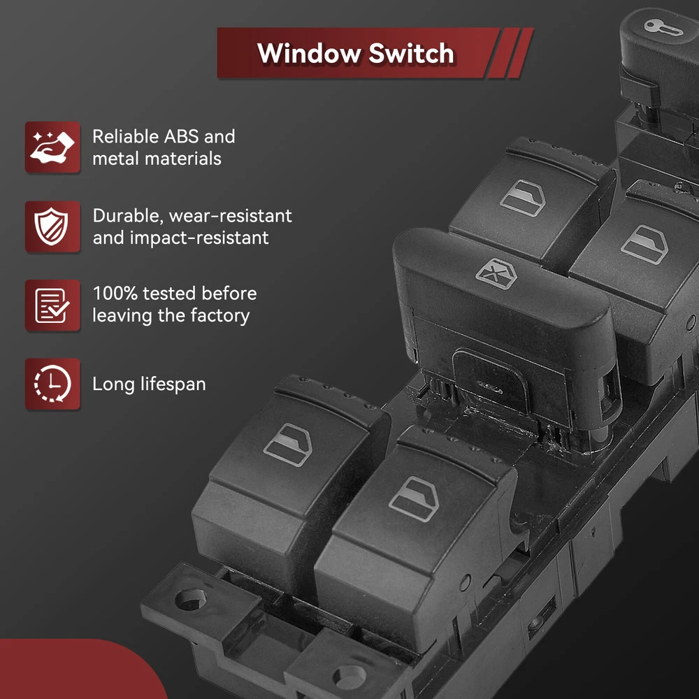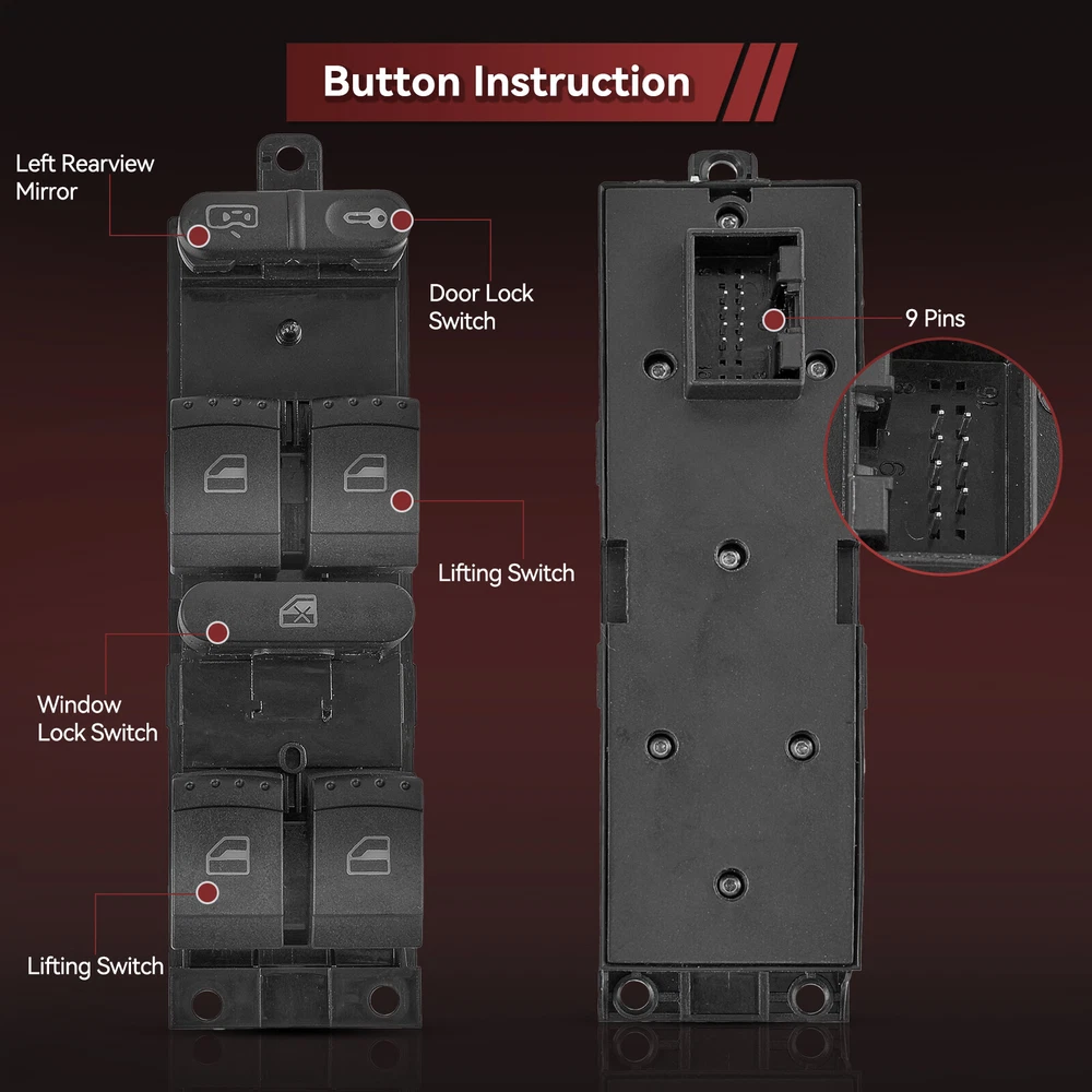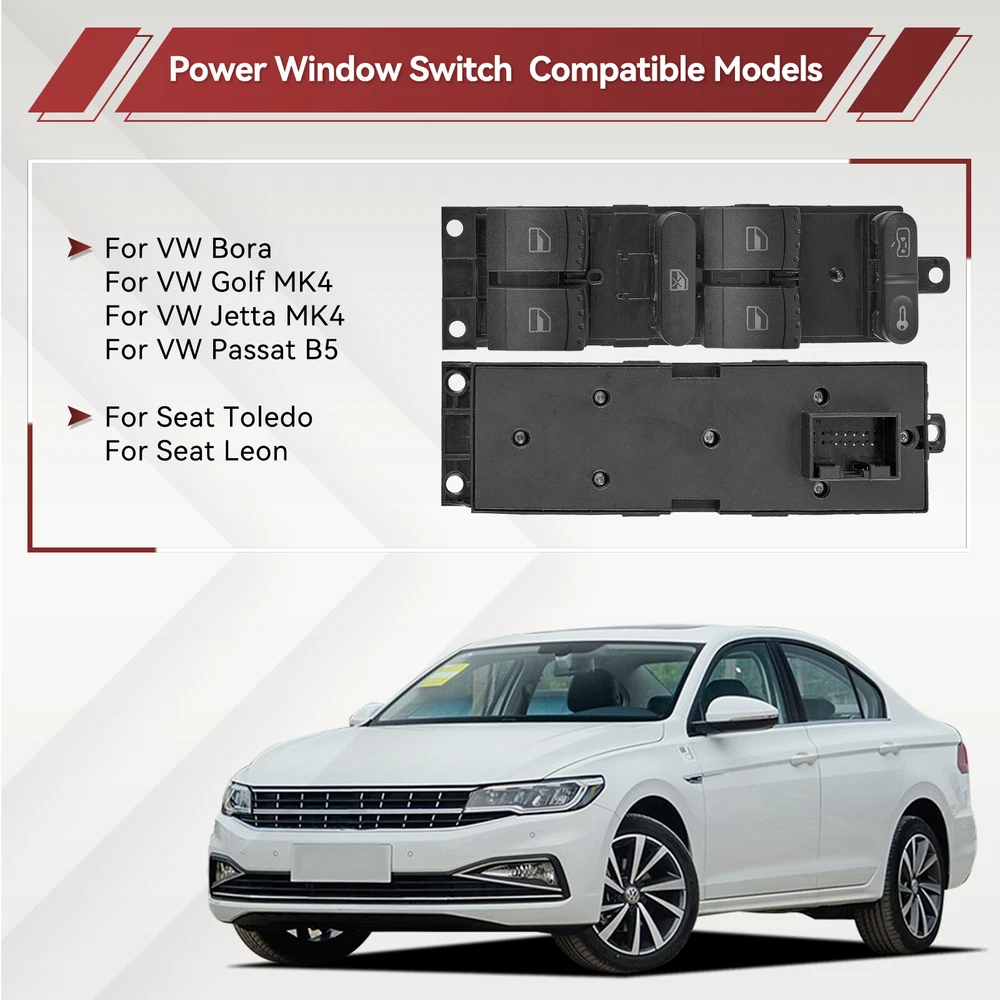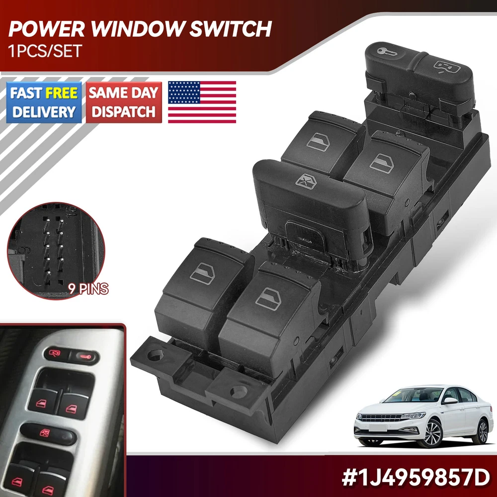 To Control: Window Fitment Type: Direct Replacement gtin13: Does not apply Switch Type: Push Button Manufacturer Warranty: 3 Months Interchange Part Number: 1J4959857, 1J4959857B Type: Switch Assembly Brand: Unbranded UPC: Does not apply OE/OEM Part Number: 1J4959857D Material: Plastic, metal Placement on Vehicle: Front Color: Black Features: Durable Universal Fitment: No