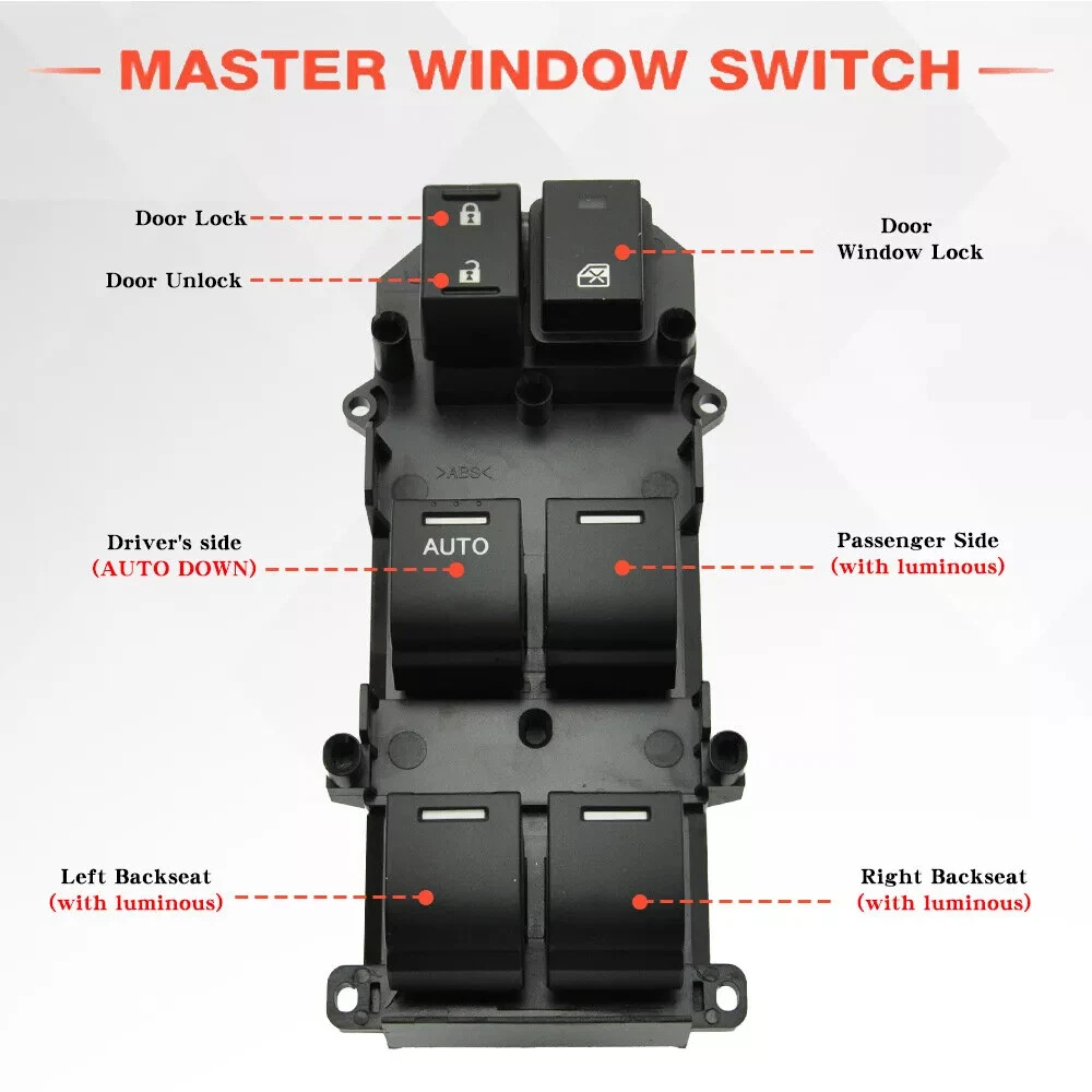 35750-TB0-H01 Master Power Window Switch For 2008-2012 Honda Accord Front Left Driver Side Repalce OE Number: 35750-TB0-H01 35750TB0H01 35750 TB0 H01 Features: Brand: Unbranded Other part number: 35750-TB0-H02、35750-TBD-H13 Connector: 37PINS Color: black To Control: Window Switch Type: Power Master Control Window Switch Fitment Type: Direct Replacement -Each item tested before ship -Brand new product, 100% aftermarket -One Year Warranty -High Quality and stable performance Package Including: 1x Window switch(35750-TB0-H01) Fitment: Fits For 2008-2012 Honda Accord