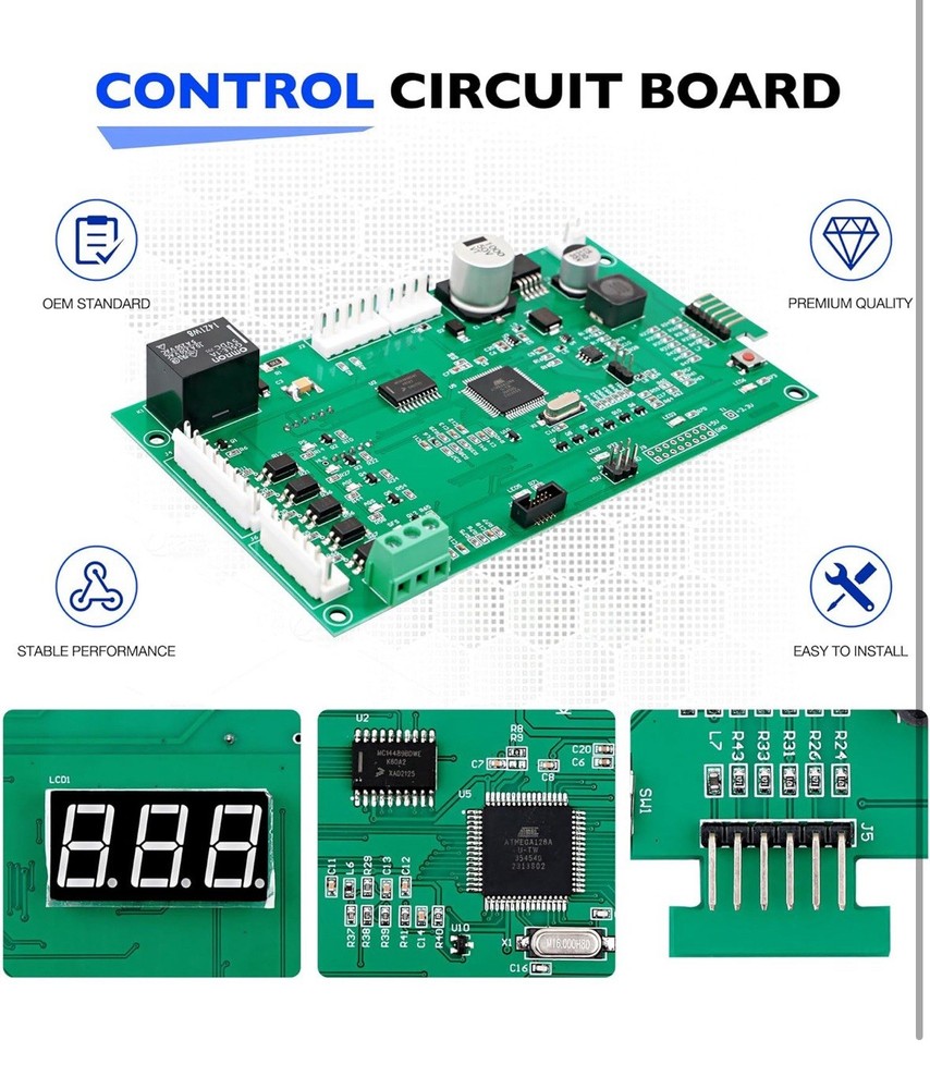 Perfect OEM Compatibility - Ensure compatibility with your MasterTemp & Max-E Therm NA/LP series pool/spa heaters using these OEM numbers: Pool Control Board - 42002-0007S, 461105. Wide Model Compatibility - This Pool Heater Control Board Kit fits Mastertemp 200, 250, 300, 400 and Sta-Rite Max-E-Therm heaters: SR200NA, SR333NA, SR400NA, SR200HD, SR333HD, SR400HD, 460805, and all NA/LP series pool and spa heater electrical systems. Top-Notch Quality - The Control Circuit Board Kit includes high-quality FR-2 copper foil laminate, upgraded solid-state capacitors, a high-precision soldering process, and SR waterproof coating for superior insulation, moisture resistance, and leakage protection. Superior Performance - Featuring upgraded solid-state capacitors and power chip, high-precision soldering techniques, and improved optocoupler and regulated power modules, offering overheat, overvoltage, and short circuit protection for quicker output control for your pool heaters. Enhanced Functionality - Cut pump running time and boost heating efficiency to save costs. If your old control board fails to start the heater, the display is unlit, or the pool water heats slowly, replace it with this control circuit board kit for improved heating performance.