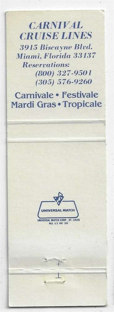Matchbook Cover The Fun Ships Carnival Cruise Lines Note the condition from the high resolution scans. The striker has not been used overall the cover is in good condition with some wear NO MATCHES IN THIS SALE COVER ONLY Your purchase will be sent by First Class Letter with tracking Powered by SixBit's eCommerce Solution