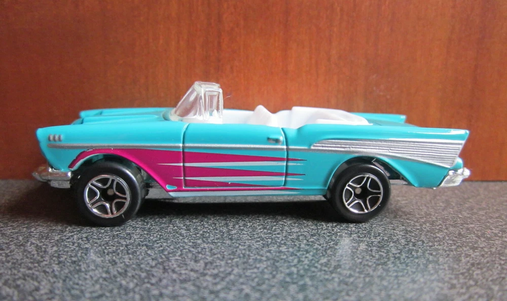 NOTE: We offer combined shipping discounts where possible. If you are purchasing more than one of our items, please add them to your Shopping Cart and click the "Request Total" button. We will send you an invoice reflecting the new total with the combined shipping cost. For sale is a 1:66 scale Matchbox 1957 Chevrolet convertible. Although the car is loose (no package), it has been stored in an acrylic case since purchase, and is in good condition. The photos provided above show the actual vehicle you will receive.