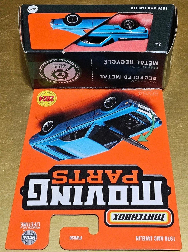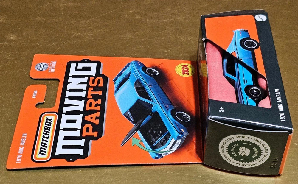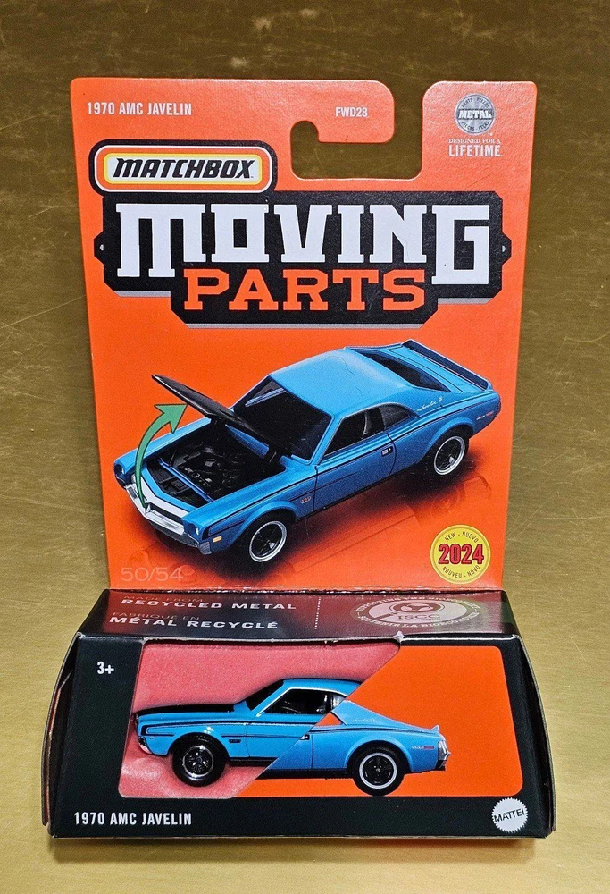 Matchbox Moving Parts 1970 AMC Javelin New for 2024 Diecast Car. First year issued. Opening hood. New in box, unopened, still sealed in the original packaging. . Car is in pristine MINT condition. Card may have slight shelf wear. Check out the photos for condition details. TAGS: Hot Wheels Mattel Matchbox lesney moving parts Diecast die Cast cars vehicles Miniatures 1/64 1:64 scale Collection collectible collector rare scarce gasser hot rods MIB NIB Super Mario character cars opening hood doors trunk 1970 AMC Javelin New for 2024