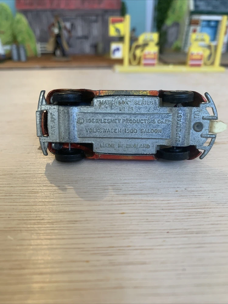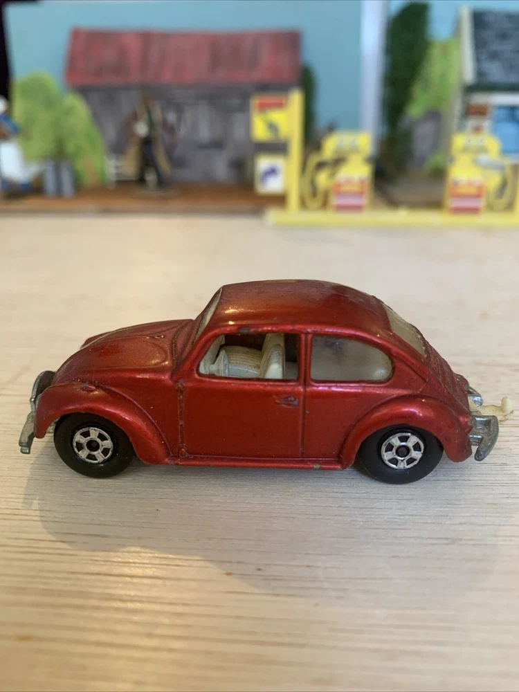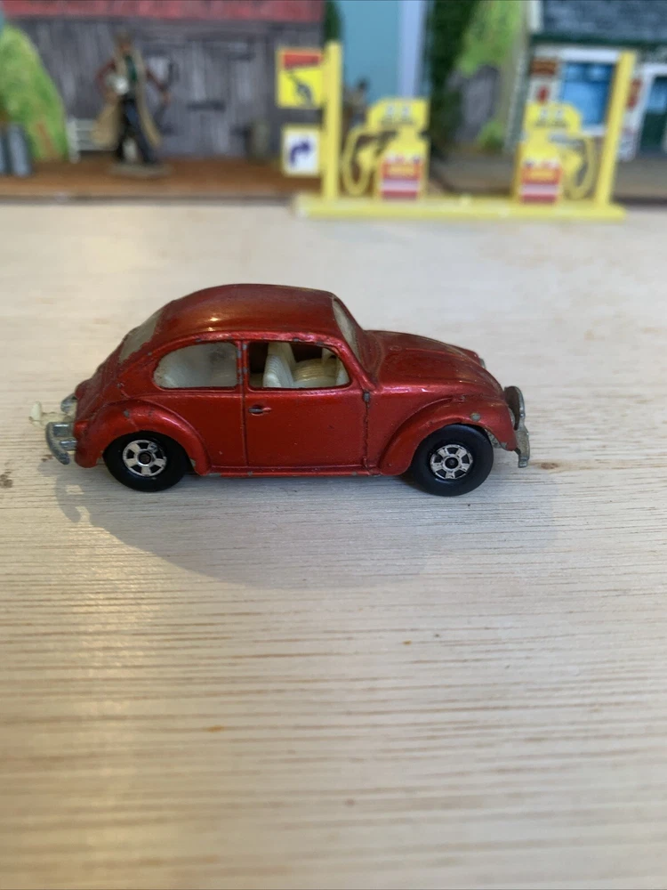 The Matchbox Superfast 15 VW Beetle is a diecast toy car from the vintage manufacture era. It features a classic Volkswagen Beetle model, part of the Matchbox Superfast series. The iconic design of the Beetle is captured in this toy car, which is a sought-after collector's item among fans of diecast vehicles.