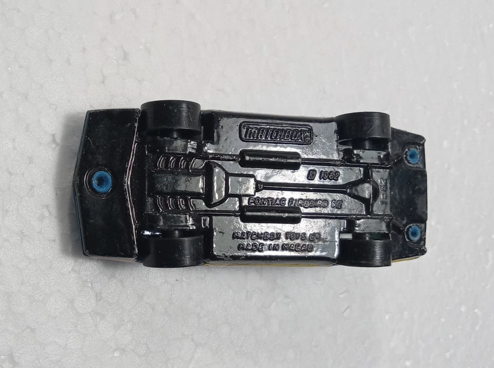 This vintage Matchbox car is a must-have for collectors and enthusiasts alike. This particular model is a 1982 Pontiac Firebird SE, made of high-quality diecast material and featuring a beautiful blue color. The car is in excellent condition and has been meticulously cared for over the years. The car is a 1:62 scale and was manufactured in Macao in 1982. It is a perfect addition to any collection and is sure to impress with its intricate details and design. Don't miss your chance to own this rare and sought-after Matchbox car.
