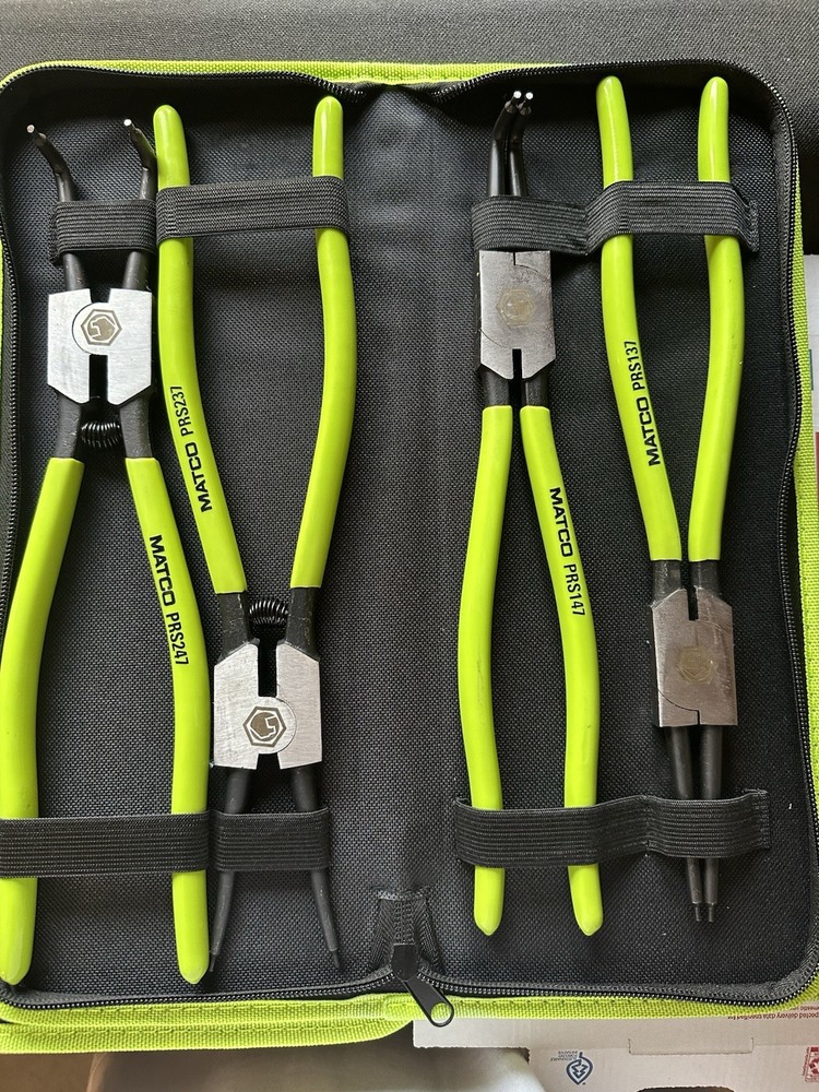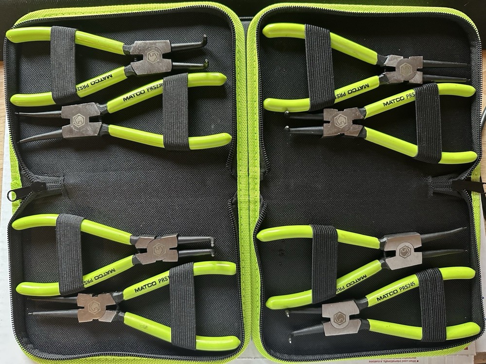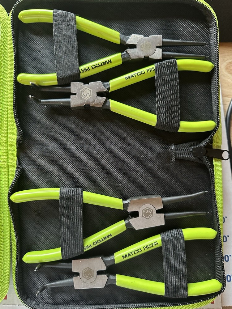 These pliers have been stored away and never used. This set contains 12 pliers. Each set includes internal and external pliers in both 90° bent and straight 4 large 13" pliers in 0.090" tip size 2 sets of 4 — 7" pliers in 0.067" and 0.050" sizes