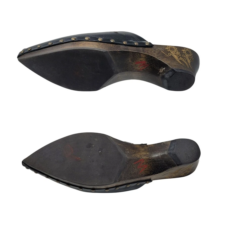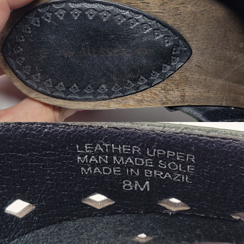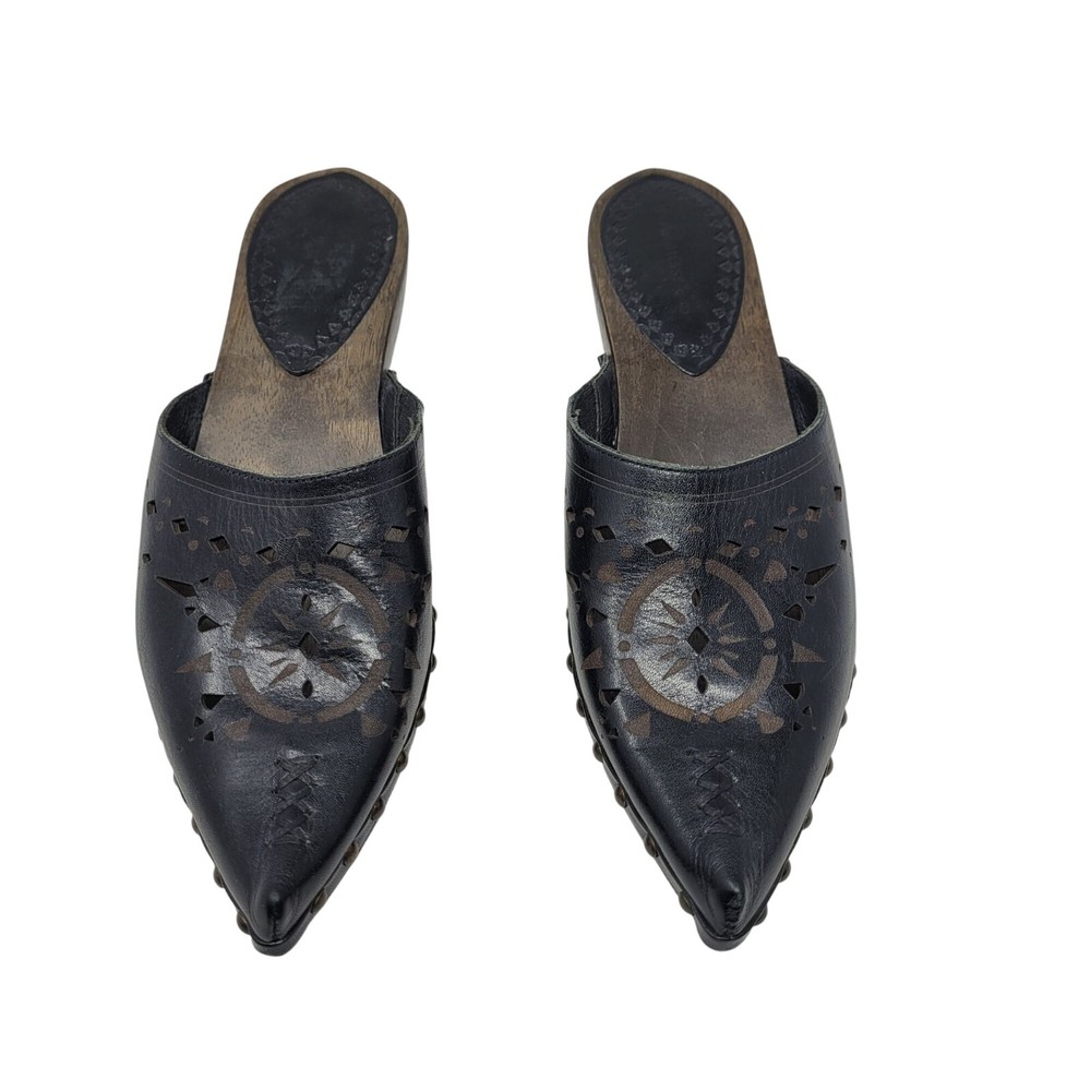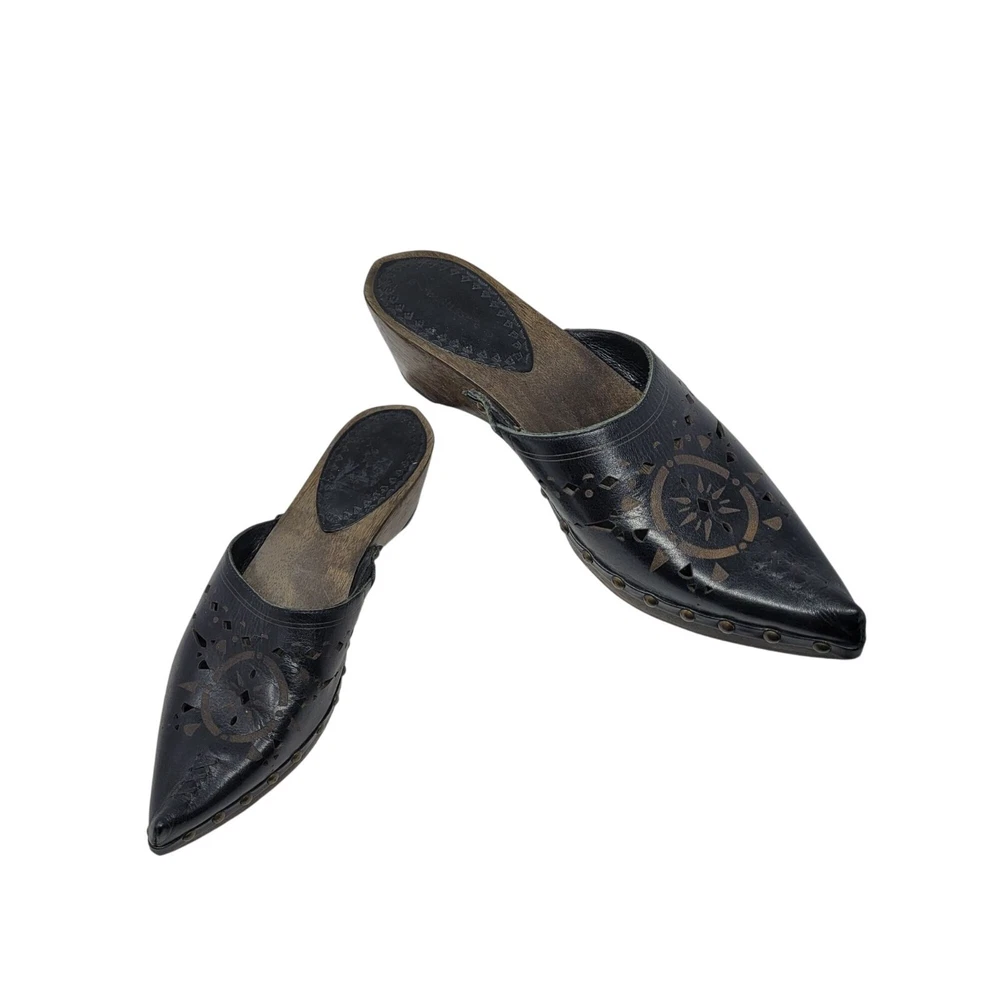 Elevate your style with these handcrafted mules. Featuring a leather upper, intricate cutout design, and durable wooden heel, they exude both charm and craftsmanship. • Leather upper with intricate cutout pattern • Slip-on design for easy wear • Wooden heel offers durability and elegance • Made in Brazil with quality craftsmanship Gently pre loved no noted flaws Size 8 Thank you for supporting my small business! Top Seller on multiple platforms and next day shipper. Bundle and save. Western Cowgirl Festival Leather