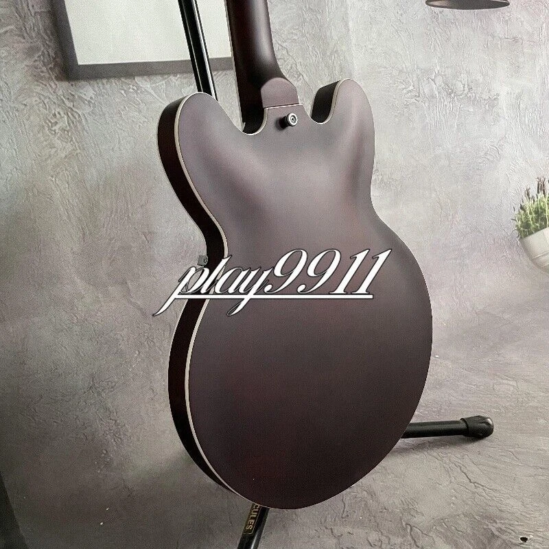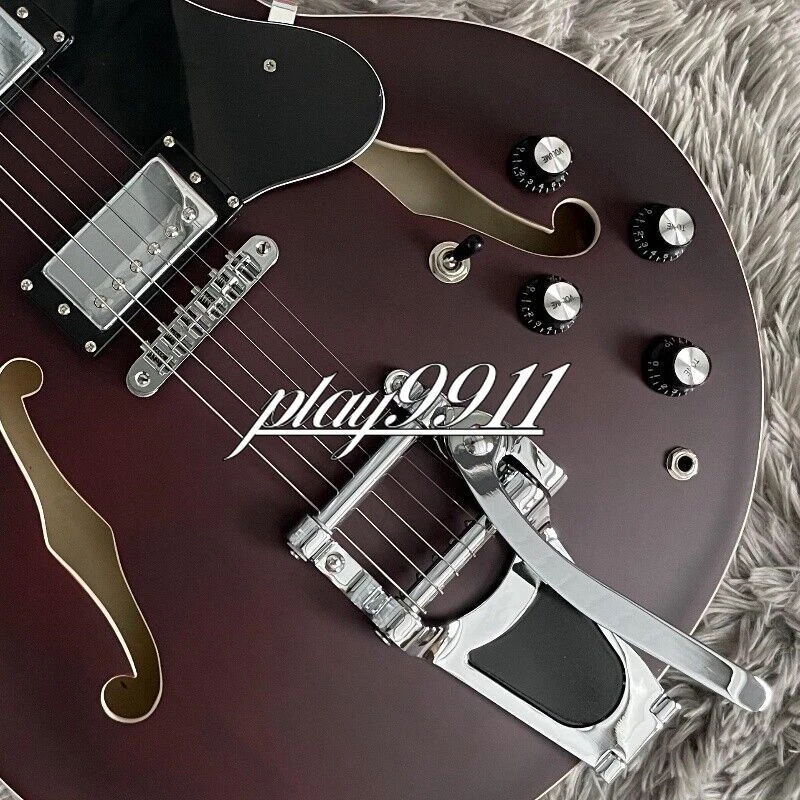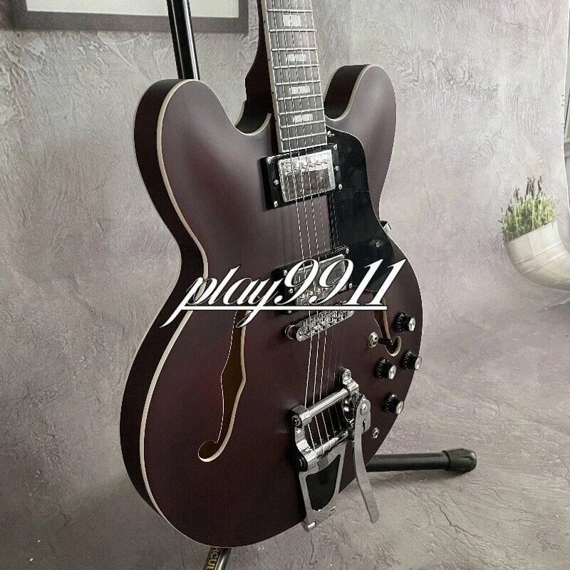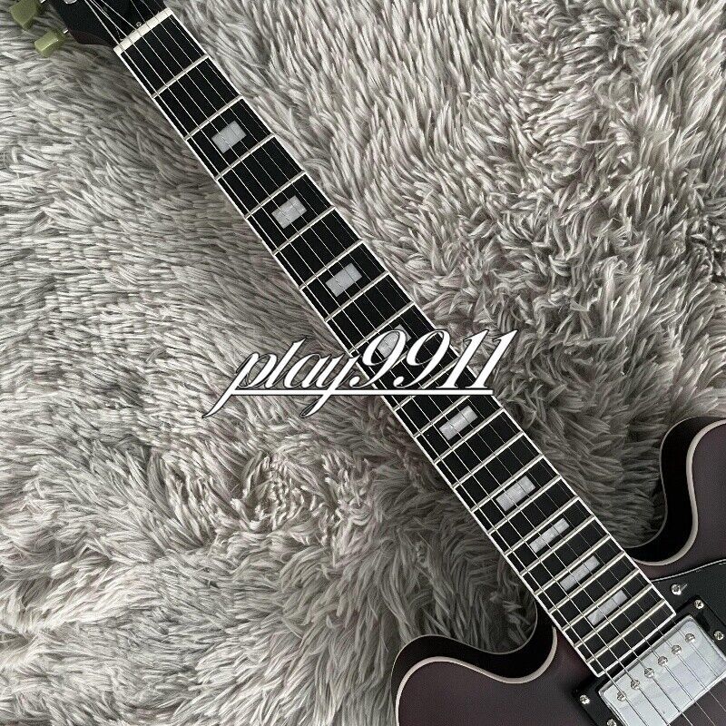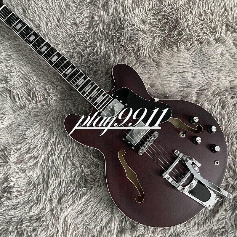 Factory Matt Reddish Brown ES-335 Big Vibrato Bridge Electric Guitar Hollow Body Welcome to my store. My team has been making musical instruments for many years. I will try my best to provide the best item for you! Goods condition Body:Mahogany Neck: Mahogany Fingerboard: Black Nut width: 42 mm Scale Length:24.7 inch Joint:Bolt on Hardware:Chrome Pickups:2 Humbuckers Pickup Switch:3-ways Electronic:2 Volume 2 Tone Bridge: Big Vibrato Bridge ABOUT THE PICTU RES The pictures are taken in our factories by ourselves. Each guitar is different from others because of the light in room or some other reasons .So there are maybe some differences between the pictures and the guitar you get. Every guitar cannot be the same in 100%, the pictures of the guitar that you see is just one of them. If you want some details about the guitar, please contact me. OUR GUARAN TEE We test every guitar (such as buzzing, sound test, workmanship) is in good condition before it is shipped out. When you receive the guitar, if you meet some problems like readjustment the strings or you are not happy with our guitar, please let me know immediately and we will try our best to meet you satisfaction. CUSTOMIZED CEN TER Head stocks are not pictured per our policy. Custom Head stocks are available upon request from our factory custom shop. Please contact us for details. All customized products are non-returnable. SHIPPIN G Once payment has been confirmed, your item will be shipped within 3 or 30 business working days. That depends on specific goods deliver ways.The speed also base on Custom Clearance Speed, which we can't control .So if you want this for your gig next weekend it probably wont make it on time, so please keep that in mind when ordering. PACKI NG We use the carton which is designed for the International transport to package the products you ordered. And we can guarantee the items will not be damaged in the way of transportation. RETURN POLI CY If the item you received is broken or defective, please contact me immediately and return it within 3 days after you received it with the original or approved packaging. After we received it, we will give you a Full-Refund or Exchange. Buyers are responsible for return shopping costs. If you want to replace it, we will send a new one to you and then forward a shipping label. For missing or replacement parts(from the original order), we will ship them to you. Please read the RETURN POLICY before you order it! FEEDBAC K Thank you for your great comments and feedback. (a) When you are satisfied with your purchase, we sincerely hope that you can give us a positive feedback. Again, we will give you a positive feedback. (b) If you are dissatisfied with your purchase, please contact us submitting a neutral or negative feedback. We will respond to you in 24 hours and work with you until you are satisfied.