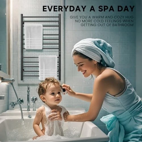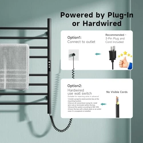 Return Policy Fast Delivery Trusted seller Wall Towel Warmer Rack for Bathroom - 12 bar Heated Towel Rack Timer and LED Indicator for Bathroom, Wall Mounted Electric Towel Rack, Aluminum Alloy Matte Black, Hard-Wired/Plug-in Product Description 【Efficient Heating】 Wall mount electric towel warmer racks with a 160-watt heating power, it reaches the optimal temperature of 115°F in just 10 minutes and maintains a constant warmth. The drying function works fast, offering a dry, warm towel after each use 【Intelligent Touchscreen Control】 Built-in touch buttons make it easy to set multiple timer options and adjust the temperature. The display switches between time and temp preventimg you from forgetting what you set. It warms and dries towels perfectly, making cold mornings comfortable. Heated towel warmer racks have energy-saving timer function, helping you save on energy costs and ensuring the towel warmer turns off when you not needed 【Certification and Safety】 KINKIB’s narrow towel warmer rack is UL certified and comes with an overheating protection device to prevent any risk of burns. Towel warmer heated towel racks drying has an IPX4 waterproof rating, making it safe for use in the bathroom. Also, it has child lock mode to prevent accidental opening by children 【Premium Materials】 The programmable towel warmer rack is crafted from 304 stainless steel, featuring laser welding and no sharp edges. It is easy to clean and built to last 【Wall-Mounted Installation】 This wall-mounted, plug-in electric towel warmer can be easily installed on the wall, maximizing floor space. Its modern design is perfect for home bathrooms, hotels, spas, and more. The package includes all necessary hardware and tools, and assembly is straightforward with our included manual Shipping Returns Payment Shipping Shipping is FREE to all addresses other than APO/PO boxes in the lower 48 states. All our stock ships from US-based warehouses. Shipped via USPS or UPS (depending on location and package weight) Unless stated otherwise, all orders will ship within 24-72 hours of your payment being processed. Check our feedback to see the great reviews of FAST shipping we offer. Returns Seller does not accept returns Payment We currently accept payment via eBay managed payments only. Once payment is cleared, we will dispatch your shipment within 1-3 business days. Please refer to the "Shipping" tab for more information regarding shipping speed to your destination.