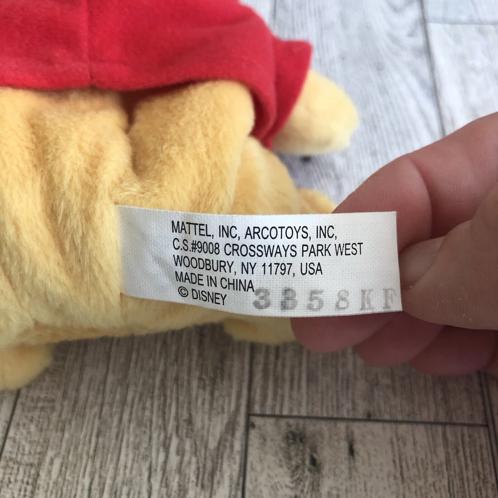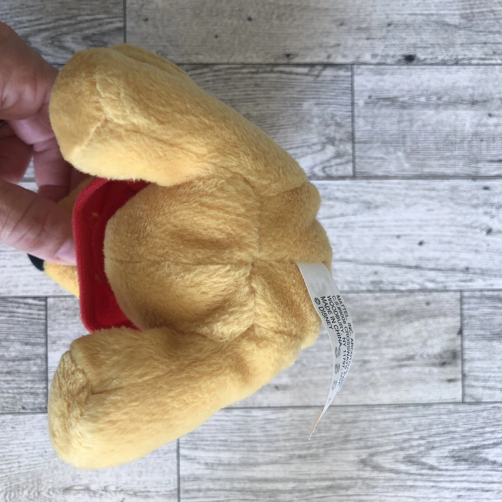 This vintage Mattel Arcotoys Disney mini Winnie the Pooh bean bag plush stuffed toy is a must-have for any collector or fan of the iconic bear. Measuring 6 inches in height, this small plush toy is perfect for cuddling or displaying on a shelf. Its bright yellow color and classic Winnie the Pooh & Friends character family make it a timeless addition to any toy collection. Made by Mattel, a trusted brand in the industry, this plush toy is sure to bring joy to both kids and adults alike. Material: 100% Polyester Fiber and Plastic Pellets. Approximate measurements: Plush: 6" tall (All measurements in pictures). Conditions: Pre owned in great condition. No noted tears or rips. Tush tags still present and in great condition. Slight discolorations, staining or imperfections could possibly be found so please look carefully at all pictures and item description before making your purchase. This item is sold as is, item in photos is the exact item you are purchasing. If you have any questions please send me a message. Comes from a smoke-free and pet-free home. Always ship fast! Offers Welcome! Check my other listings for more great deals! Thank you for stopping by and happy shopping!