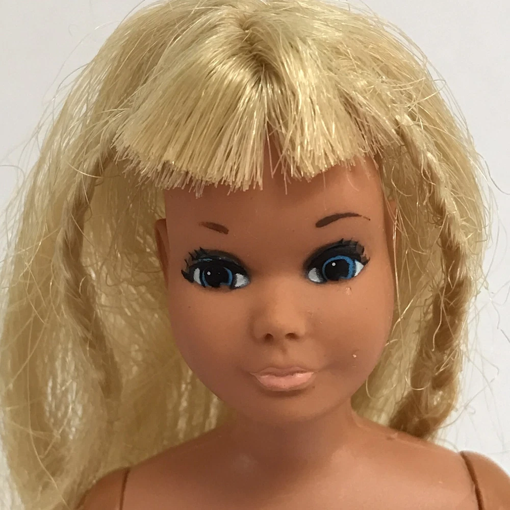 Mattel Barbie 1967 SKIPPER DOLL TWIST N TURN Blue Eyes Bendy Legs Wide Korea Nice condition. Stand not included. Please see all pictures for condition details.
