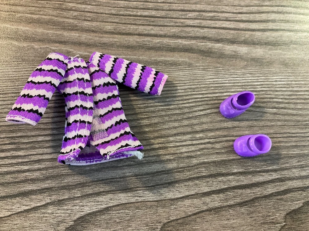 Kelly Doll Outfit This Kelly Clothes Set features A log sleeve purple and white striped dress A pair of shoes are included Set is in Nice Condition ***Please don’t hesitate to make an offer! *** ***Buy It Now :$ 4.50*** OR Best Offer ***Shipping: $ 4.75*** ***Happy to combine shipping for you*** *** Please let me know if you have any question, Happy to help in any way I Can*** ****Please , if you have the time check out my newly opened eBay store. I will be listing many Barbies, clothing, & accessories. As rims goes on I hope to add more fun collectible and vintage items. Like my store to see my newly listed items. Thanks so much!