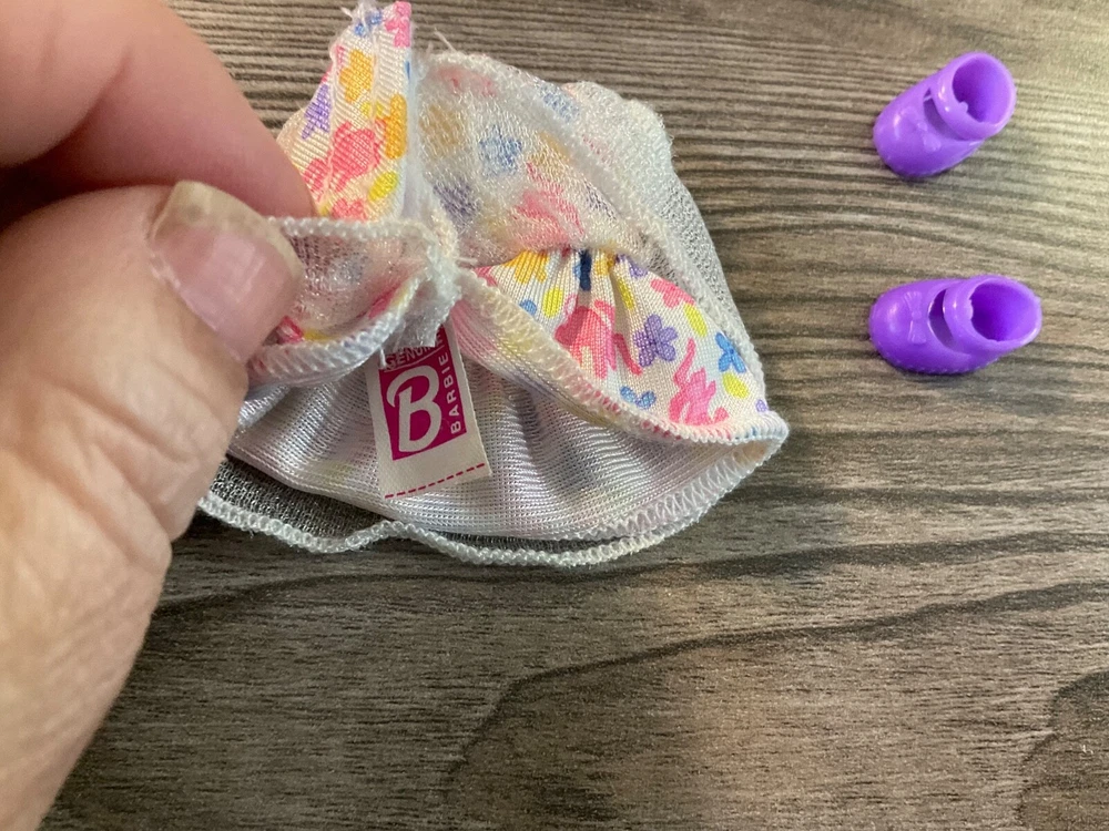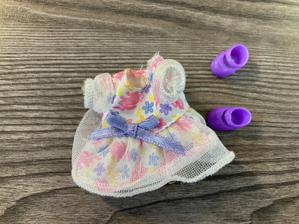 Kelly Doll Outfit This Kelly Clothes Set features A short sleeve white and multicolor flower print dress Dress has a pink “B” label A pair of shoes are included Set is in Nice Condition ***Please don’t hesitate to make an offer! *** ***Buy It Now :$ 4.50*** OR Best Offer ***Shipping: $ 4.75*** ***Happy to combine shipping for you*** *** Please let me know if you have any question, Happy to help in any way I Can*** ****Please , if you have the time check out my newly opened eBay store. I will be listing many Barbies, clothing, & accessories. As rims goes on I hope to add more fun collectible and vintage items. Like my store to see my newly listed items. Thanks so much!