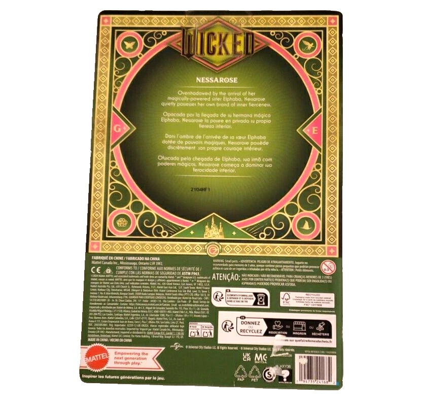 Experience the magic of the beloved Broadway hit with the Mattel Collectible - Universal Pictures’ Wicked Nessarose Fashion Doll. Capturing the essence of the iconic character, this doll is a must-have for fans and collectors alike. It features intricate detailing and authentic clothing reminiscent of Nessarose's enchanting wardrobe from the show. Crafted for enthusiasts aged 4 and above, this collectible is not part of a custom bundle and comes as a single piece, ready to take its place in your collection or to be gifted to a fellow admirer of the musical. With its 2024 release, this doll is a contemporary addition that promises to bring a touch of witchcraft and charm to any assortment.
