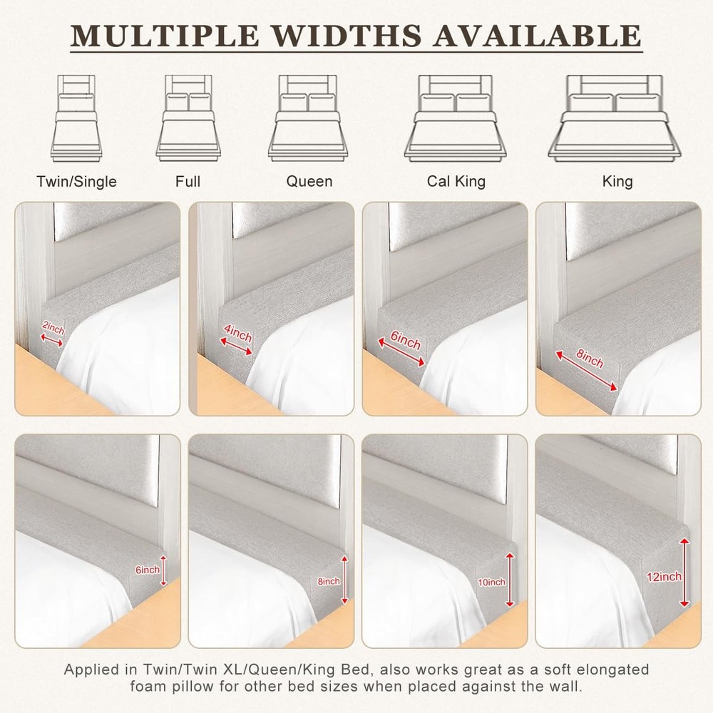 Soft&Durable: The pillowcase is made of breathable polyester pongee fabric, soft and comfortable. Removable &Zipper Design: Removable pillowcase with zipper, easy to clean.It is pilling free and machine washable, making it the perfect choice for a restful night's sleep. High Density Memory Foam: The sponge has high density and hardness, it will not collapse after a long time of use, and it can play its functionality well. With a breathable, hypoallergenic design, this headboard pillow is perfect for insomniacs and will help support the bed pillow to provide you with a more comfortable night's sleep. Warm Tip: Due to the properties of the sponge, it may take up to 48-72 hours to fully expand after opening the package. [UPDATED DESIGN BED SPACE FILLER] With the mattress seam tightly fit, do not have to worry about Bed Gap Filler shift, really fill the bed seams, rather than like other similar products can only cover up. [HIGH QUALITY MATERIAL] Mattress Extender cover is made of premium quality linen fabric, breathable, delicate touch; filler is filled with upgraded environmental-friendly foam, excellent density and high resilience could give you long-lasting comfort when leaning against the headboard. [8 MATTRESS WIDTHS] 39", 47", 54", 60", 70", 72", 76", 78" applied in Twin/Twin XL/Full/Queen/Cal King/King Bed, also works great as a soft elongated foam pillow for other bed sizes when placed against the wall. You could also customize bed gap filler for crib beds. Product Size Error:±0.3in. [MULTIPLE APPLICATION] Bed Gap Filler is designed to provide outstanding comfort and support as well as a convenience. It can not only act as arm/head support for a wooden sofa, but also close the gap between your headboard or wall and bed mattress. Putting this bed gap filler during bed gap or sofa gap, will reduce the trouble of dropping things for you, and have a better sleep. [PREMIUM CUSTOMER SERVICE] We assure you that all our products are strictly inspected before packing. But there are still some factors that may cause product defects. If you encounter any problems, please contact our customer service team, we will give you a satisfactory after-sales service.
