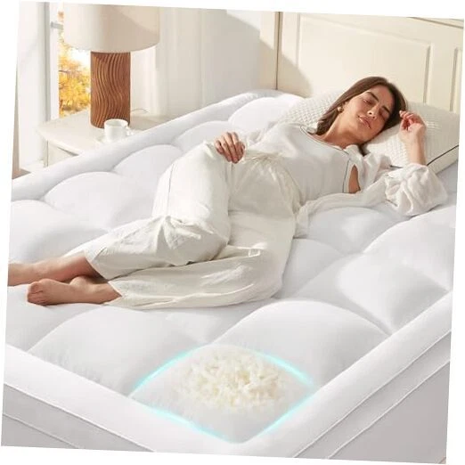 Return Policy Fast Delivery Trusted seller Mattress Topper Queen for Back Pain, Memory Foam Pillow Top Mattress Topper Queen, 5X Support Extra Thick Mattress Pad with 8-21" Deep Pocket, 60x80 Inches, White Product Description 【Upgrade Support】 Indulge in ultimate comfort with our pillow top mattress topper. It is crafted from a blend of 50% memory foam and 50% down alternative fiber, providing an optimal balance of softness and firm. 【Upgrade Thickness】The 1200gsm overfilled mattress topper for queen beds is thick enough to relieve back pain and reduce stress. 【Enhanced Comfort】Improve your sleep experience with this Oeko-Tex certified queen size mattress topper, and enjoy that face-to-face comfort. 【Deep Elastic Pocket】 The deep elastic pocket with a bed skirt comfortably fits mattresses up to 21 inches high, ensuring a secure fit that prevents the mattress pad from shifting or sliding. 【Easy Care and Maintenance】 Our memory foam mattress topper is machine washable for convenience and long-lasting freshness Shipping Returns Payment Shipping Shipping is FREE to all addresses other than APO/PO boxes in the lower 48 states. All our stock ships from US-based warehouses. Shipped via USPS or UPS (depending on location and package weight) Unless stated otherwise, all orders will ship within 24-72 hours of your payment being processed. Check our feedback to see the great reviews of FAST shipping we offer. Returns Seller does not accept returns Payment We currently accept payment via eBay managed payments only. Once payment is cleared, we will dispatch your shipment within 1-3 business days. Please refer to the "Shipping" tab for more information regarding shipping speed to your destination.