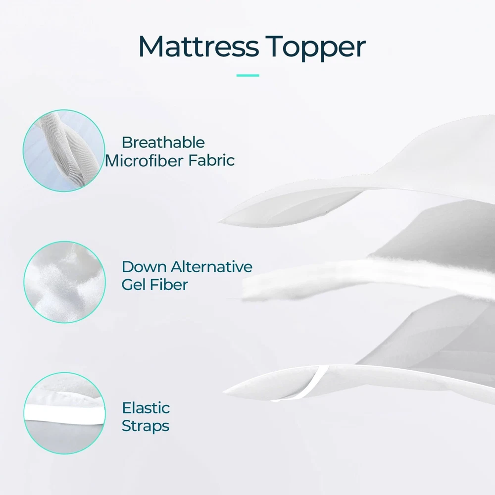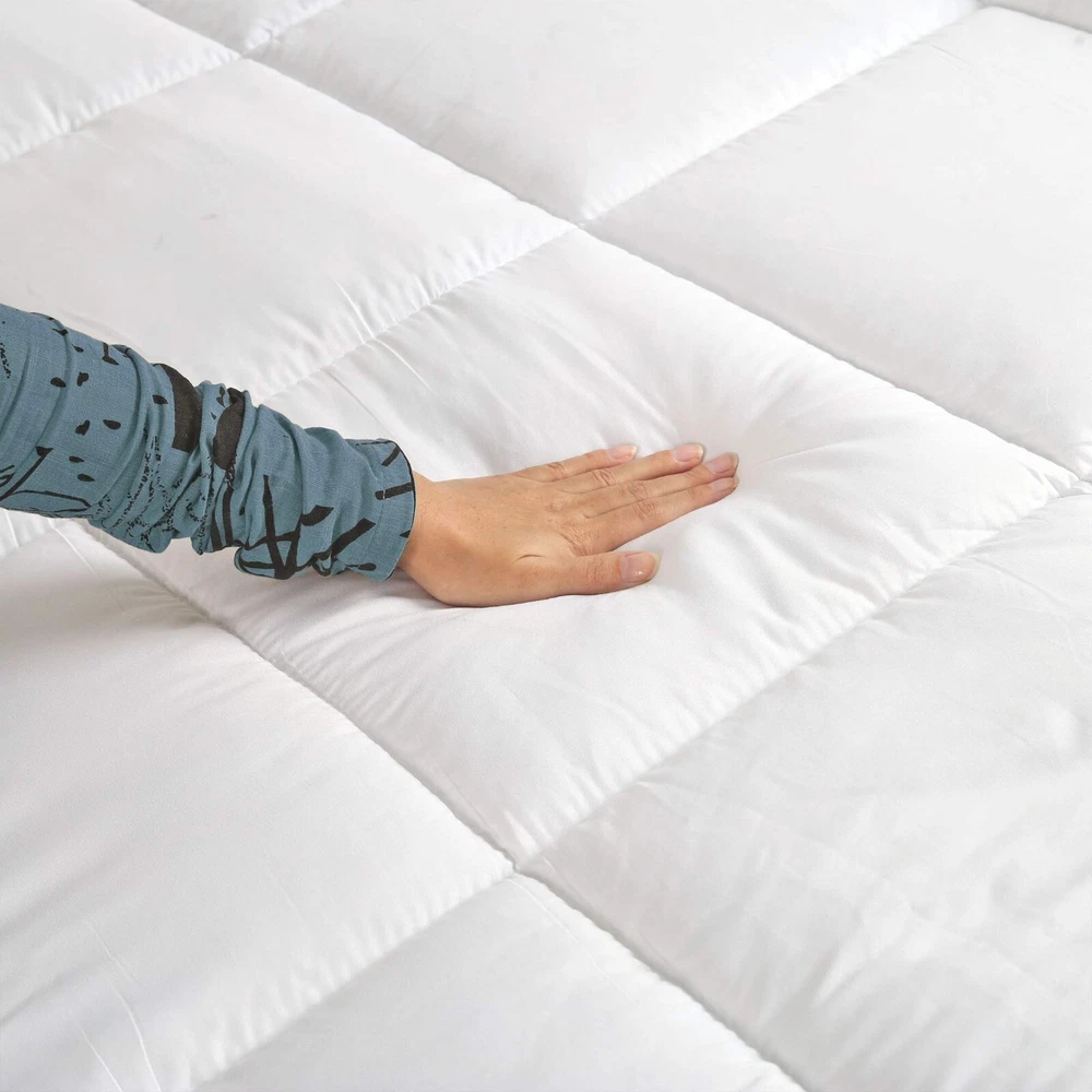 Cotton Passion Visit Store Store Sale Feedback Product Description Description: Enhance your sleep experience with our Plush Mattress Topper, designed for added comfort and support. Crafted to elevate your slumber, this topper offers an extra layer of softness and relaxation. With elastic straps for effortless placement, it ensures a snug fit for a restful night's sleep. Made from hypoallergenic microfiber fabric in pristine white. Key Features: Enhanced softness and comfort with a plush polyester filling. Durable construction using high-quality materials for lasting support. Elastic straps ensure a secure fit without shifting. Easy care: Machine washable cover with fluffable synthetic down filling. OEKO-TEX Certified for safety and eco-friendliness. Optimal Fluffiness of Topper: Our approximately 2-inch thick mattress topper boasts a 400 GSM filling Gusset for added comfort. Upon arrival, conveniently packaged in a bag, it needs a little time to reach its full potential. Allow it to breathe and restore its natural thickness by laying it out for a few hours. For superior fluffiness, a brief stint in sunlight works wonders. Softness and Polyester Filling: Indulge in luxurious softness with our mattress topper, featuring a plush polyester filling that provides an extra layer of comfort for a rejuvenating sleep experience. Easy Fit Straps: Elastic straps facilitate easy placement and ensure a secure fit, preventing the topper from shifting during the night, ensuring a comfortable sleep. Durable & Secure: Crafted from hypoallergenic microfiber fabric, this topper ensures durability and lasting support, maintaining its quality wash after wash. Size Variation: Available in multiple sizes for a perfect fit: Twin: 39x75 inches Full: 54x75 inches Queen: 60x80 inches King: 78x80 inches Package Includes: 1 Mattress Topper OEKO-TEX Certified Product: This mattress topper is OEKO-TEX certified, assuring safety and eco-friendliness, aligning with responsible and environmentally conscious manufacturing standards. Our Bedding Collections Topper & Protectors View Blankets View Bedding & Sheet View Curtains View 100% Customer Satisfaction We prioritize customer satisfaction above all else. Our goal is to ensure that every customer has a positive experience with our products and services. If you have any issues or concerns, our dedicated customer support team is here to assist you. Fast and Free Shipping We offer fast and free shipping on all orders, ensuring that your purchases reach you in a timely manner. Additionally, we have a 30 Days return policy, making it easy for you to return or exchange any items if needed. OEKO-TEX Certified Bedding What sets us apart is our commitment to quality and sustainability. We are proud to offer OEKO-TEX certified bedding, which means our products have been tested and certified to be free from harmful substances. mattress topper mattress topper queen queen mattress topper king size mattress topper mattress topper full king mattress topper mattress topper king queen size mattress topper twin mattress topper full size mattress topper wool mattress topper mattress topper twin full mattress topper gel mattress topper cooling mattress topper mattress topper king size extra firm mattress topper twin xl mattress topper mattress toppers electric mattress topper 4 inch mattress topper hard mattress topper cal king mattress topper foam mattress topper queen wool mattress topper king cooling gel mattress topper single mattress topper california king mattress topper mattress topper cover only memory foam mattress topper double mattress topper full size thick mattress topper queen size memory foam mattress topper purple mattress topper twin bed mattress topper twin size mattress topper mattress topper twin xl super king mattress topper mattress topper cover mattress pads mattress pad queen mattress pad mattress pad queen mattress pads & toppers twin mattress pad king mattress pad mattress pad full full size mattress pad queen size mattress pad water heated mattress pad waterproof mattress pad mattress pad king king size mattress pad pillow top mattress pad queen cooling mattress pad pillow top mattress pad full foam mattress pad full mattress pad mattress pad twin queen mattress pad cover california king mattress pad bed topper matresses topper queen toppers queen topper bed topper queen queen bed topper bed topper full king size topper matresses topper full full size bed topper