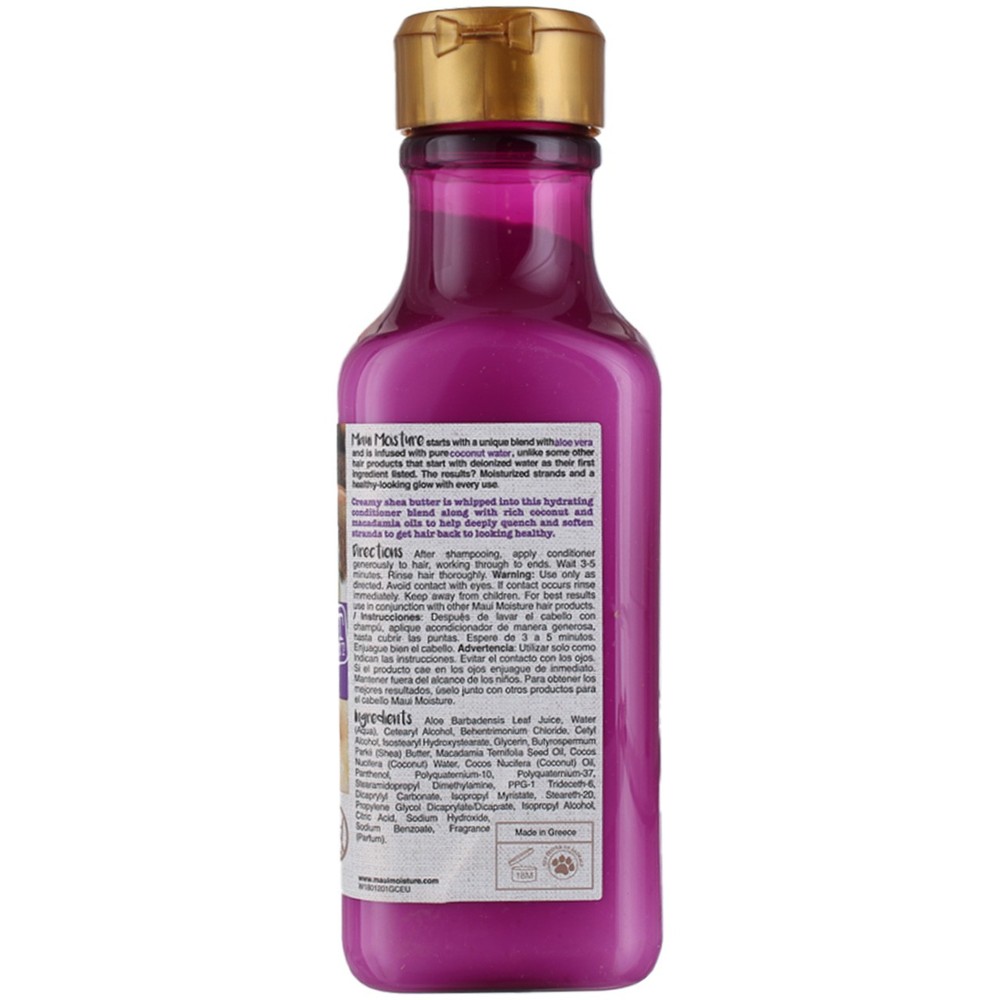 Product Description Maui Moisture starts with a unique blend with aloe vera juice and is infused with pure coconut water, unlike some other conditioners that start with deionized water as their first ingredient listed. The results? Moisturized strands, mended split ends and a healthy glow with every use. Creamy shea butter is whipped into this hydrating conditioner blend along with rich coconut and macadamia oils to help deeply quench and soften strands to get hair back to looking healthy Maui Moisture Heal & Hydrate + Shea Butter Conditioner 13 fl. oz - Deeply hydrating conditioner helps nourish curls leaving them soft with a healthy-looking glow - Made with 100% aloe as the first ingredient, along with shea butter, coconut oil & macademia oil - Ideal for tight curls, the deeply hydrating shea butter formula is safe for color-treated hair - UNIQUE BLEND WITH ALOE VERA: The rich blend of this restorative vegan conditioner contains 100% aloe vera as the first ingredient along with nourishing shea butter, coconut oil and macademia oil - NOT ALL MOISTURE IS THE SAME: The gentle and nourishing formula of this sulfate-free surfactant moisturizing conditioner is vegan, free from silicones, parabens and mineral oil, and contains no synthetic dyes Ingredients Aloe Barbadensis Leaf Juice, Behentrimonium Chloride, Cetearyl Alcohol, Cocos Nucifera (Coconut) Water, Glyceryl Stearate, Glycerin, Cocos Nucifera (Coconut) Oil, Butyrospermum Parkii (Shea) Butter, Macadamia Ternifolia Seed Oil, Panthenol, Polyquaternium-10, Polyquaternium-37, Propylene Glycol, Dicaprylate/Dicaprate, PPG-1 Trideceth-6, Tapioca Starch, Diazolidinyl Urea, Iodopropynyl Butylcarbamate, Fragrance (Parfum) Product Description Maui Moisture starts with a unique blend with aloe vera juice and is infused with pure coconut water, unlike some other conditioners that start with deionized water as their first ingredient listed. The results? Moisturized strands, mended split ends and a healthy glow with every use. Creamy shea butter is whipped into this hydrating conditioner blend along with rich coconut and macadamia oils to help deeply quench and soften strands to get hair back to looking healthy Maui Moisture Heal & Hydrate + Shea Butter Conditioner 13 fl. oz - Deeply hydrating conditioner helps nourish curls leaving them soft with a healthy-looking glow - Made with 100% aloe as the first ingredient, along with shea butter, coconut oil & macademia oil - Ideal for tight curls, the deeply hydrating shea butter formula is safe for color-treated hair - UNIQUE BLEND WITH ALOE VERA: The rich blend of this restorative vegan conditioner contains 100% aloe vera as the first ingredient along with nourishing shea butter, coconut oil and macademia oil - NOT ALL MOISTURE IS THE SAME: The gentle and nourishing formula of this sulfate-free surfactant moisturizing conditioner is vegan, free from silicones, parabens and mineral oil, and contains no synthetic dyes Ingredients Aloe Barbadensis Leaf Juice, Behentrimonium Chloride, Cetearyl Alcohol, Cocos Nucifera (Coconut) Water, Glyceryl Stearate, Glycerin, Cocos Nucifera (Coconut) Oil, Butyrospermum Parkii (Shea) Butter, Macadamia Ternifolia Seed Oil, Panthenol, Polyquaternium-10, Polyquaternium-37, Propylene Glycol, Dicaprylate/Dicaprate, PPG-1 Trideceth-6, Tapioca Starch, Diazolidinyl Urea, Iodopropynyl Butylcarbamate, Fragrance (Parfum) Suggested Use After shampooing, apply conditioner generously to hair, working through to ends. Wait 3-5 minutes. Rinse hair thoroughly Warnings Use only as directed. Avoid contact with eyes. If contact occurs rinse immediately. Keep away from children Disclaimer The product descriptions and instructions provided by vitabox.com are for informational purposes only and are qualified in their entirety by the information available from manufacturers of the products. You should carefully read all product packaging, and contact the manufacturer with any questions before using a product. While we endeavor to ensure that product descriptions are current, manufacturers sometimes change their products. We are not liable for inaccuracies or misstatements about products. We do not provide medical advice or recommendations. You should not use the information provided by vitabox.com for diagnosing or treating a health problem or disease. If you have or suspect that you have a medical problem, immediately contact your health care provider. Information and statements regarding dietary supplements have not been evaluated by the Food and Drug Administration or any other government agency and are not intended to diagnose, treat, cure, or prevent any disease.
