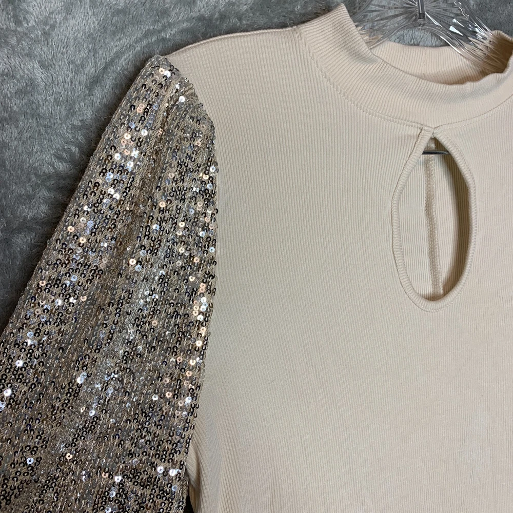 Good Pre Owned condition. Please see photos for details. SUPER FAST SHIPPING!!! We ship next business day! If you aren't happy with your purchase we offer 30 day FREE returns. No questions asked! Maurices Women Coquette Clean Girl Party Holiday Sequin Keyhole Ribbed Top S