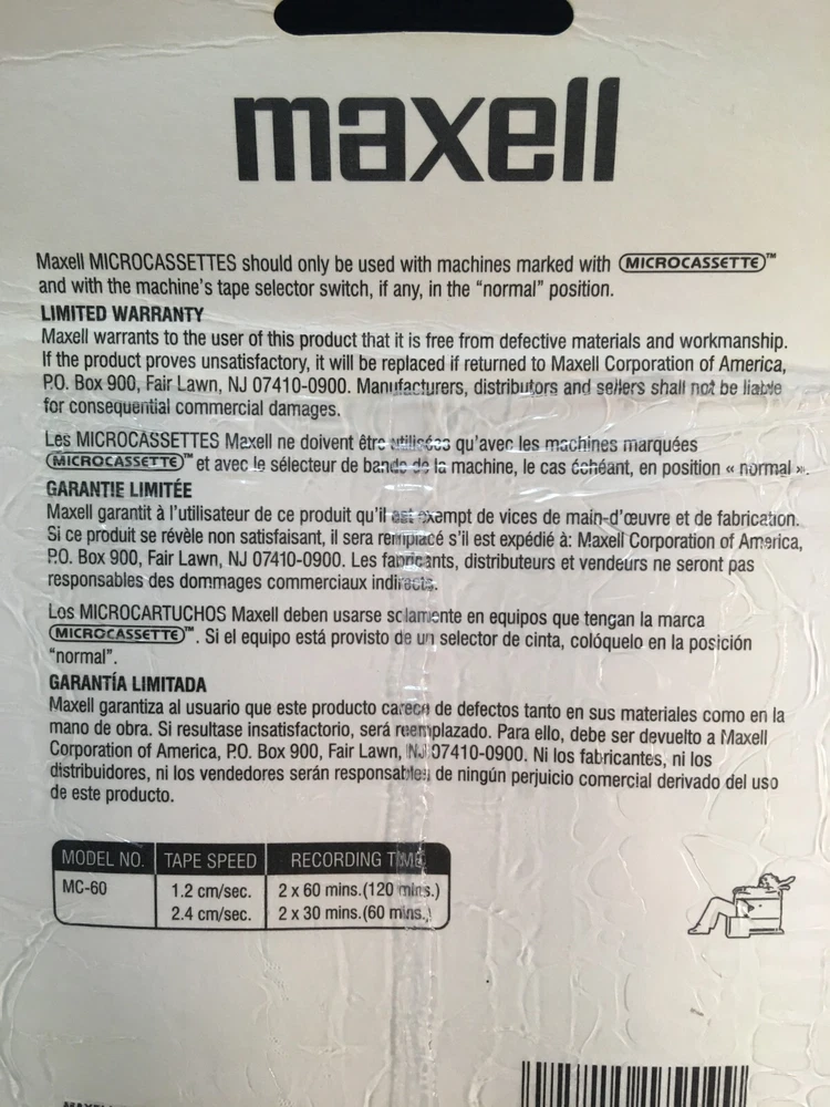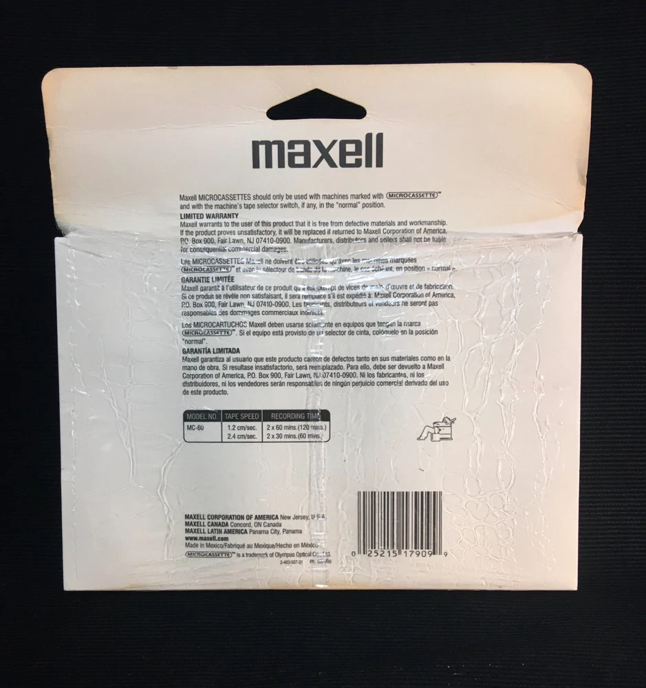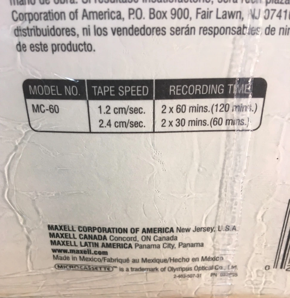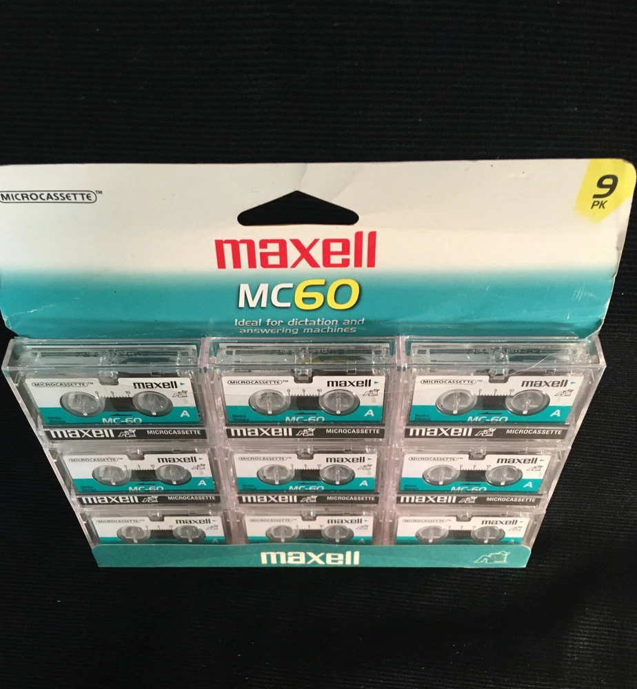 ~ ~ ~ ~ ~ ~ ~ ~ ~ ~ ~ ~ ~ Maxell MC60 Microcassette 9-pack New Unopened "Ideal for dictation and answering machines" New in original packaging, shrinkwrap ~ ~ ~ ~ ~ ~ ~ ~ ~ ~ ~ ~ ~