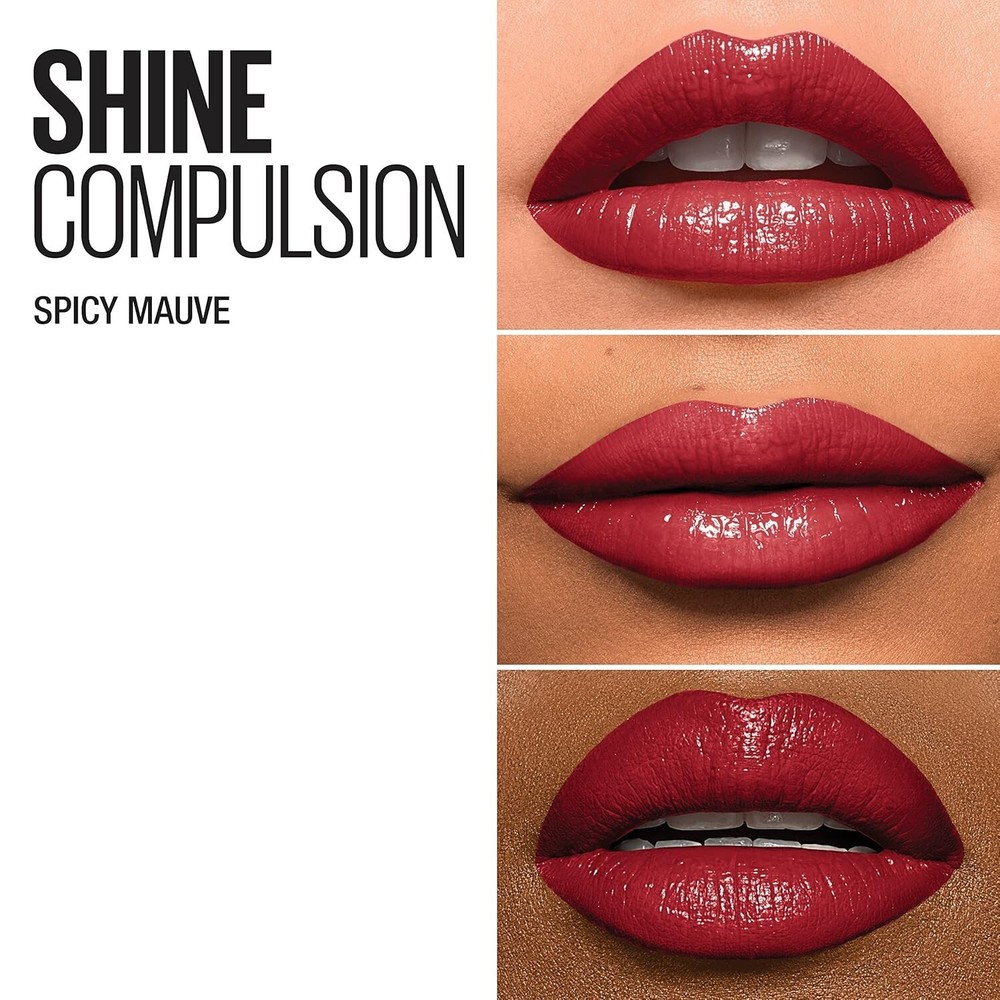 Meet the newest generation in lip color, Maybelline's first oil-in-stick lipstick has 60 percent reflective oils for an irresistible shine Build layer upon layer of pigmented color and irresistible shine with Maybelline's Shine Compulsion Lipstick Formulated with ultra-saturated pigments and a high shine effect, this glossy lipstick delivers a lustrous and indulgent finish Get saturated pigments, decadent shine, and an intensely glistening effect all in one lipstick color From neutrals shades such as taupe and brown to bold hues like purple and pink, Maybelline's high-shine lip color is available in a range of day-to-night colors