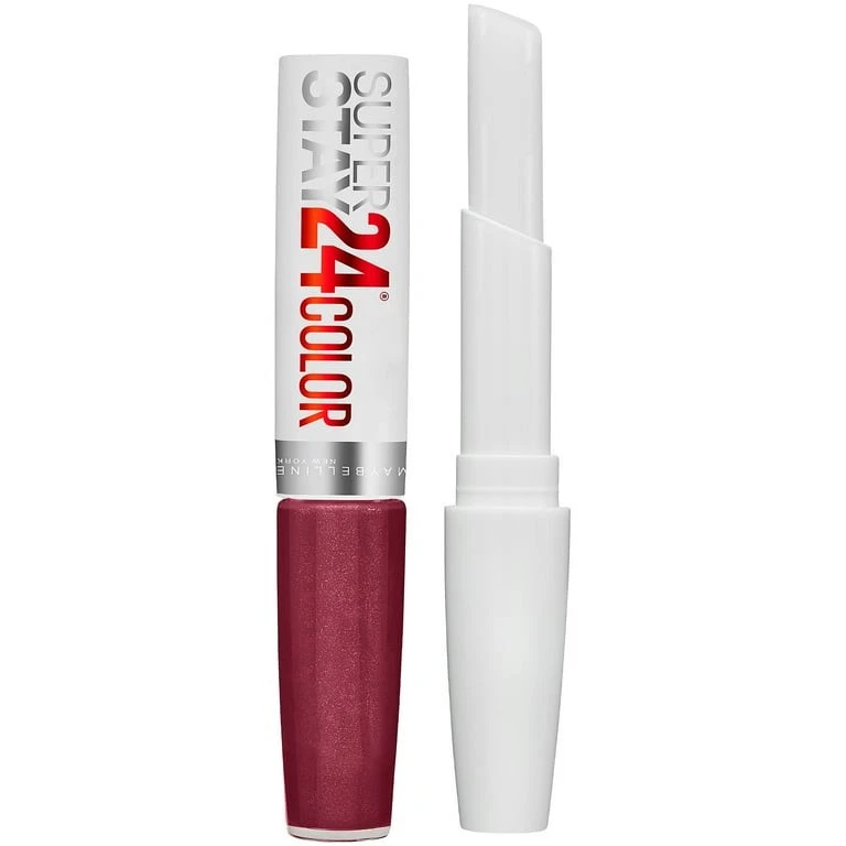 Maybelline SuperStay 24H 2-Step Liquid Lipstick Raisin: Meet the wonder that stretches the limits of long-lasting lip color. Our liquid formula lasts for 24 hours and features an ultra-conditioning balm to keep lips moisturized through the day. The exclusive Microflex technology in SuperStay 24H Liquid Lipstick ensures color won't cake, flake, or dry. Now, available in four smile-brightening shades. Each new shade is enhanced with blue color pigments to minimize yellow undertones in the teeth. Flexible formula moves with your lips for no caking or flaking . •Ultra-conditioning, refillable balm seals in softness for all-day comfort •Bring on high-impact lip color that lasts all day •Microflex technology keeps your color fresh for up to 24 hours •Color of a lipstick, glides like a gloss, and moisturizes like a lip balm •Available in a brilliant range of amped-up shades
