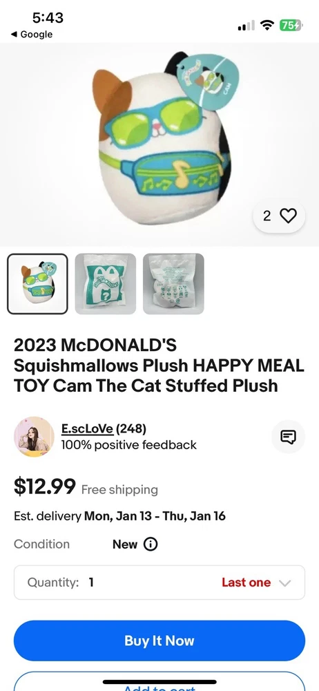 McDonalds Happy Meal Mini Squishmallow New In Bag - CAM